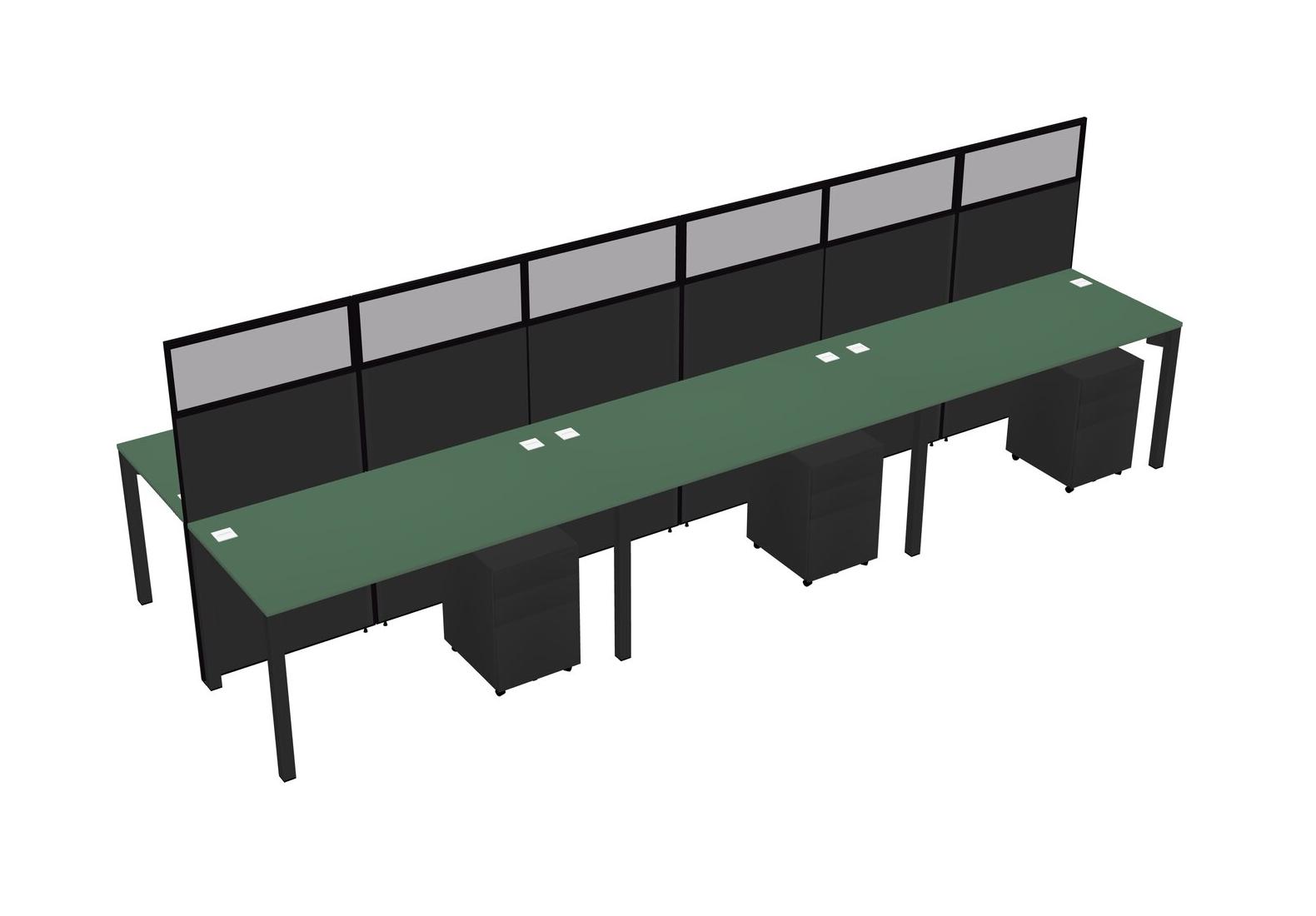 Green Shared Rectangular Office Cubicle Panel System With Mobile Drawers For 6 Persons