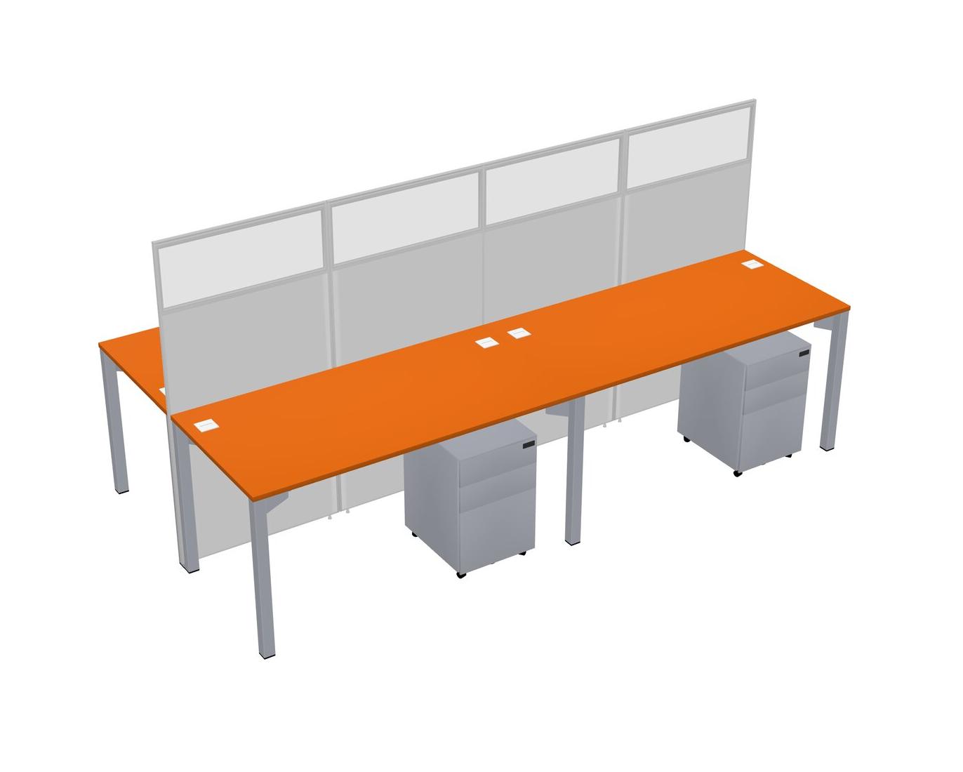 Orange Shared Rectangular Office Cubicle Panel System With Mobile Drawers For 4 Persons