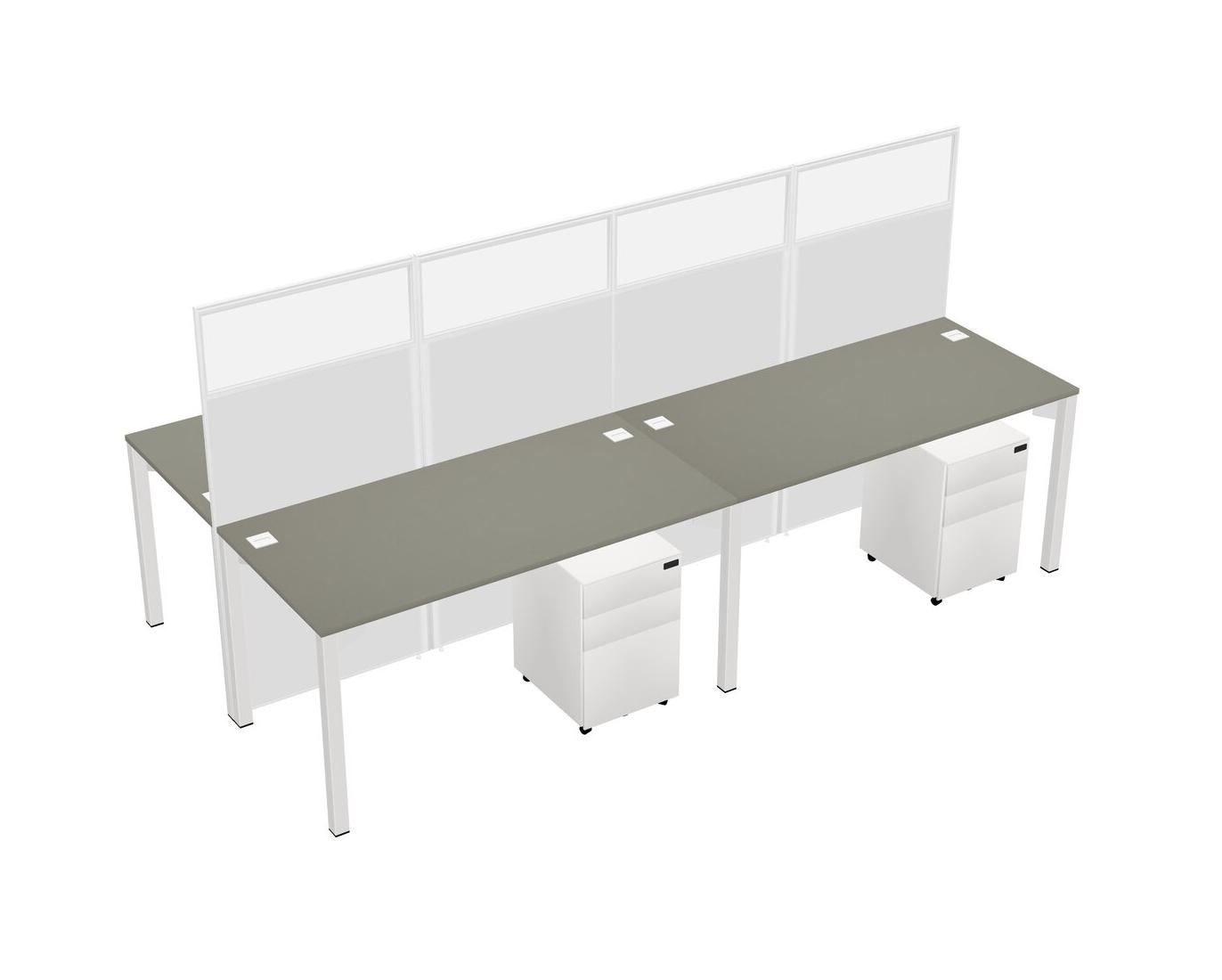 Grey Shadows Shared Rectangular Office Cubicle Panel System With Mobile Drawers For 4 Persons