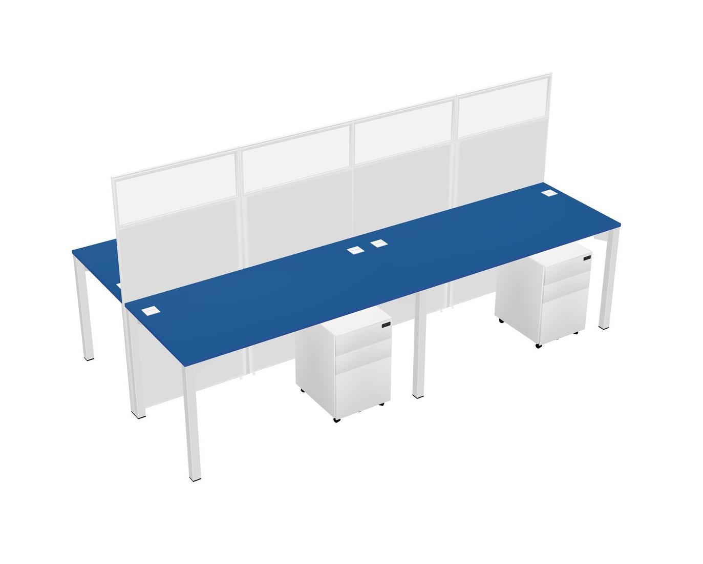 Prism Blue Shared Rectangular Office Cubicle Panel System With Mobile Drawers For 4 Persons