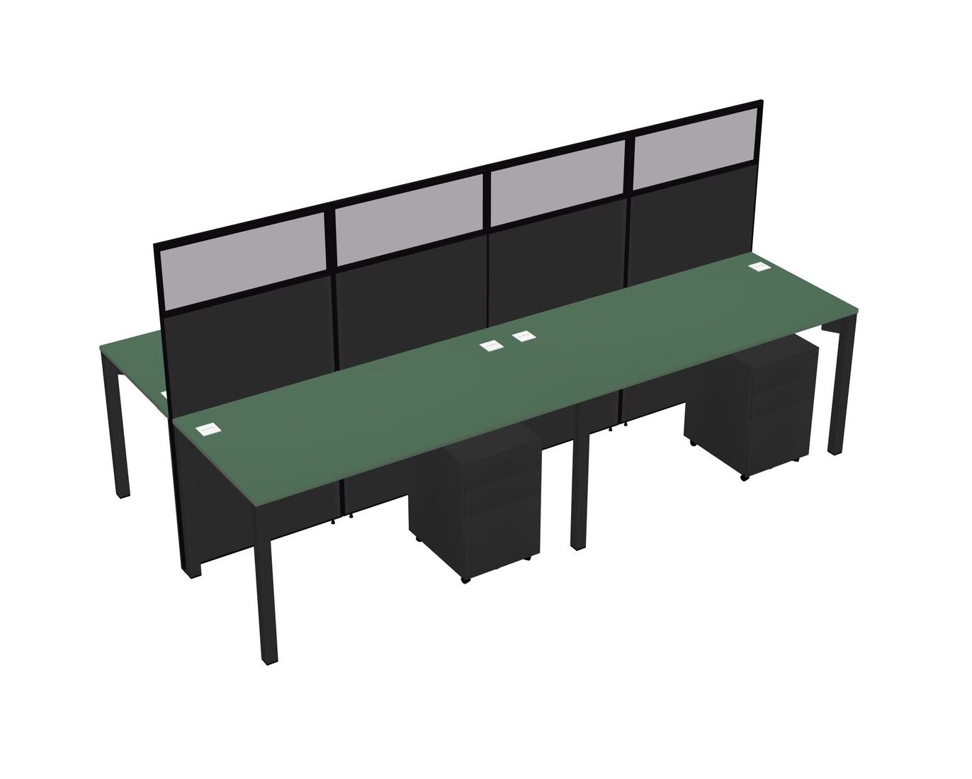 Green Shared Rectangular Office Cubicle Panel System With Mobile Drawers For 4 Persons