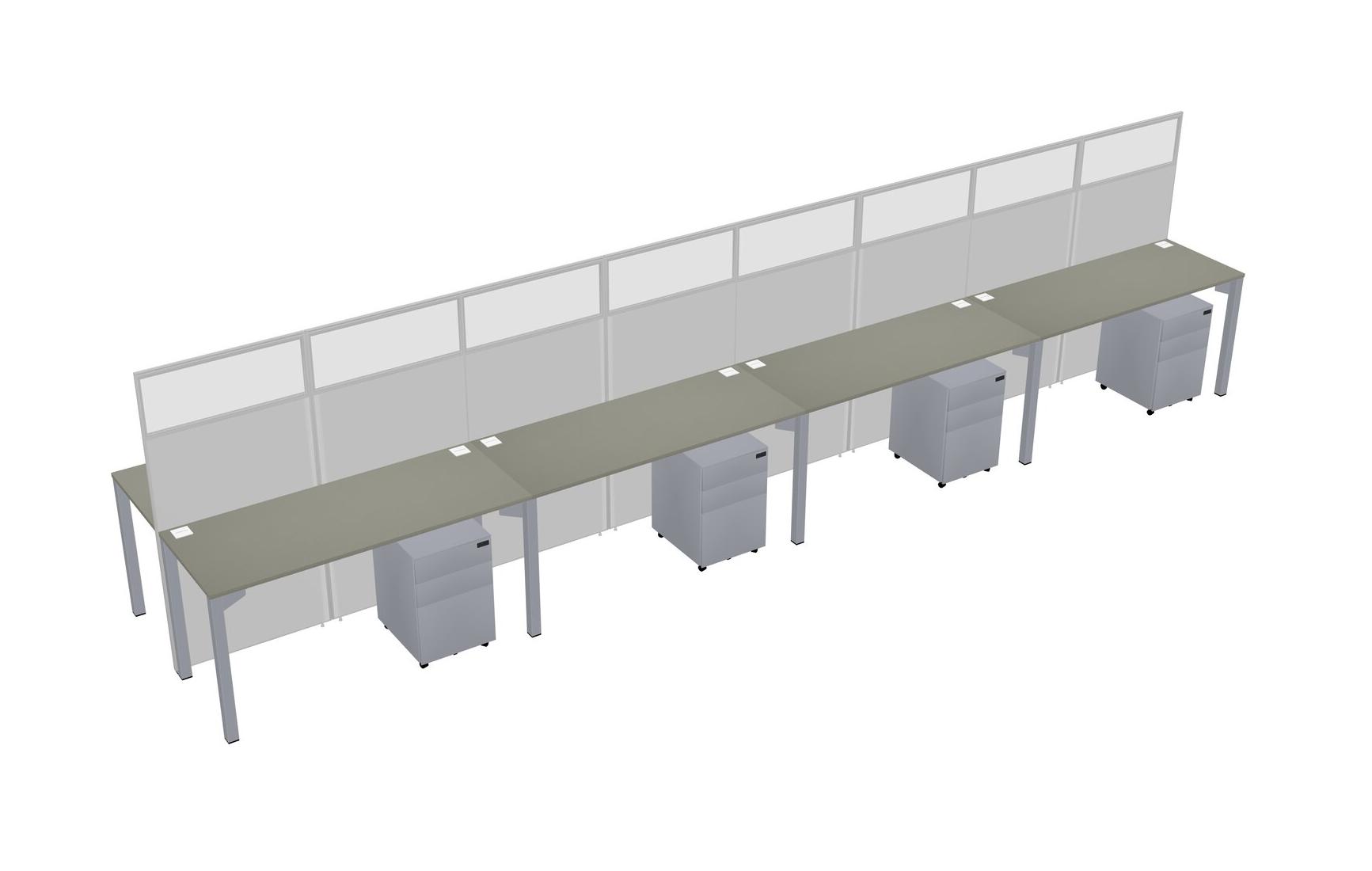 Grey Shadows Shared Rectangular Office Cubicle Panel System With Mobile Drawers For 8 Persons