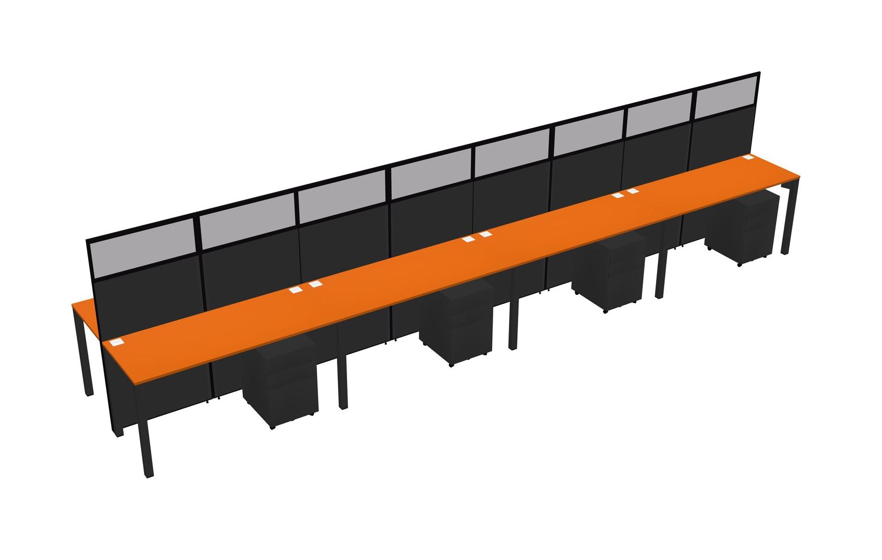 Orange Shared Rectangular Office Cubicle Panel System With Mobile Drawers For 8 Persons