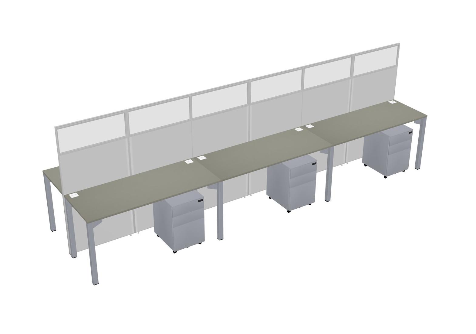Grey Shadows Shared Rectangular Office Cubicle Panel System With Mobile Drawers For 6 Persons