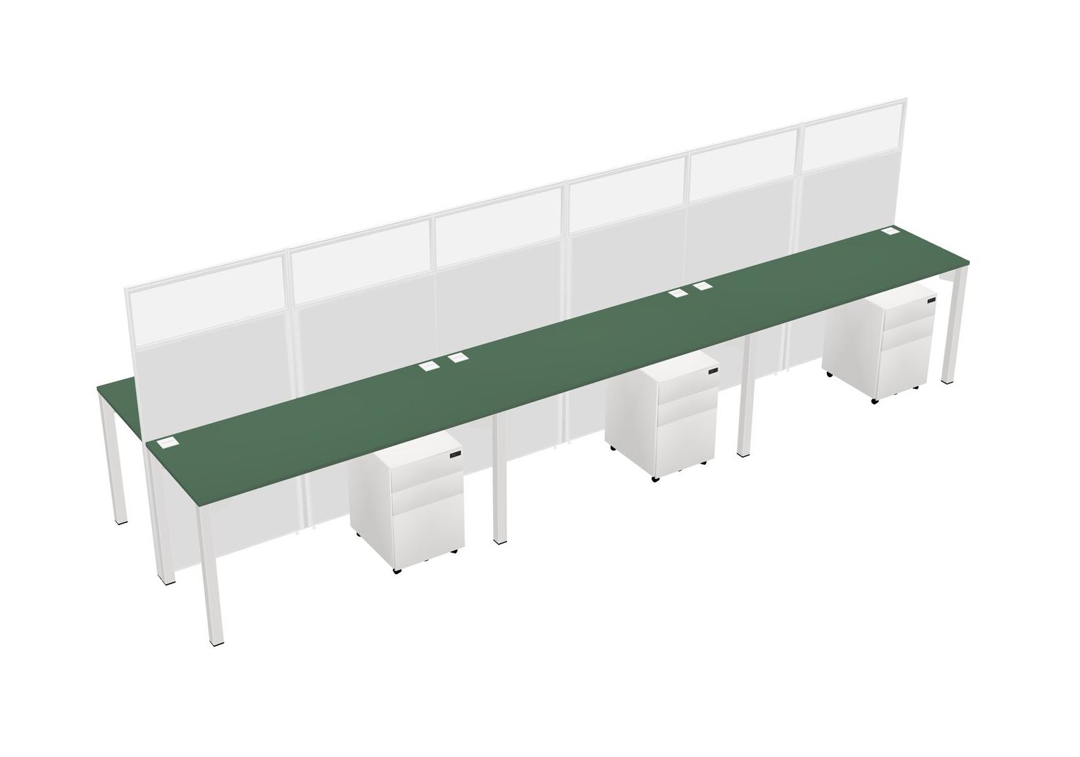 Green Shared Rectangular Office Cubicle Panel System With Mobile Drawers For 6 Persons