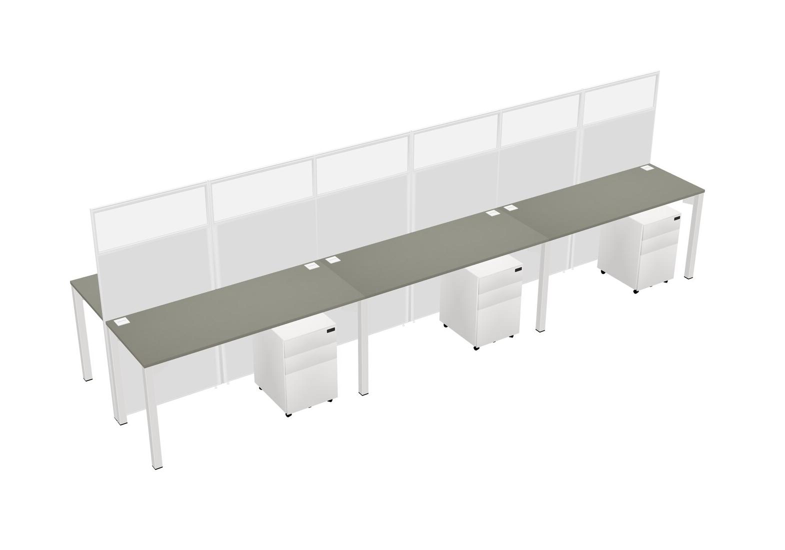Grey Shadows Shared Rectangular Office Cubicle Panel System With Mobile Drawers For 6 Persons