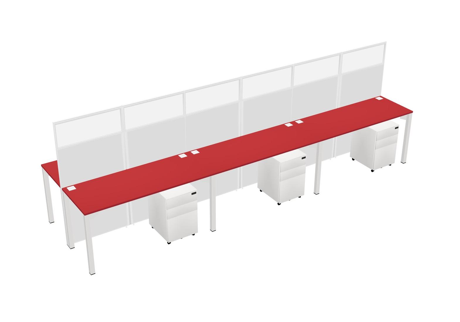Prism Red Shared Rectangular Office Cubicle Panel System With Mobile Drawers For 6 Persons