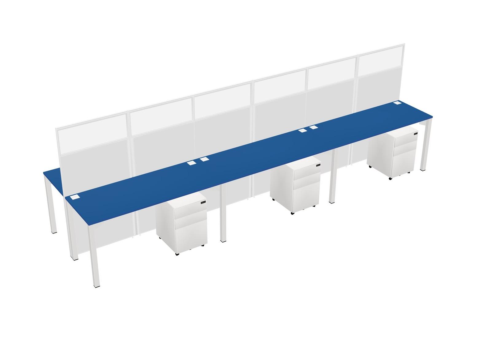 Prism Blue Shared Rectangular Office Cubicle Panel System With Mobile Drawers For 6 Persons