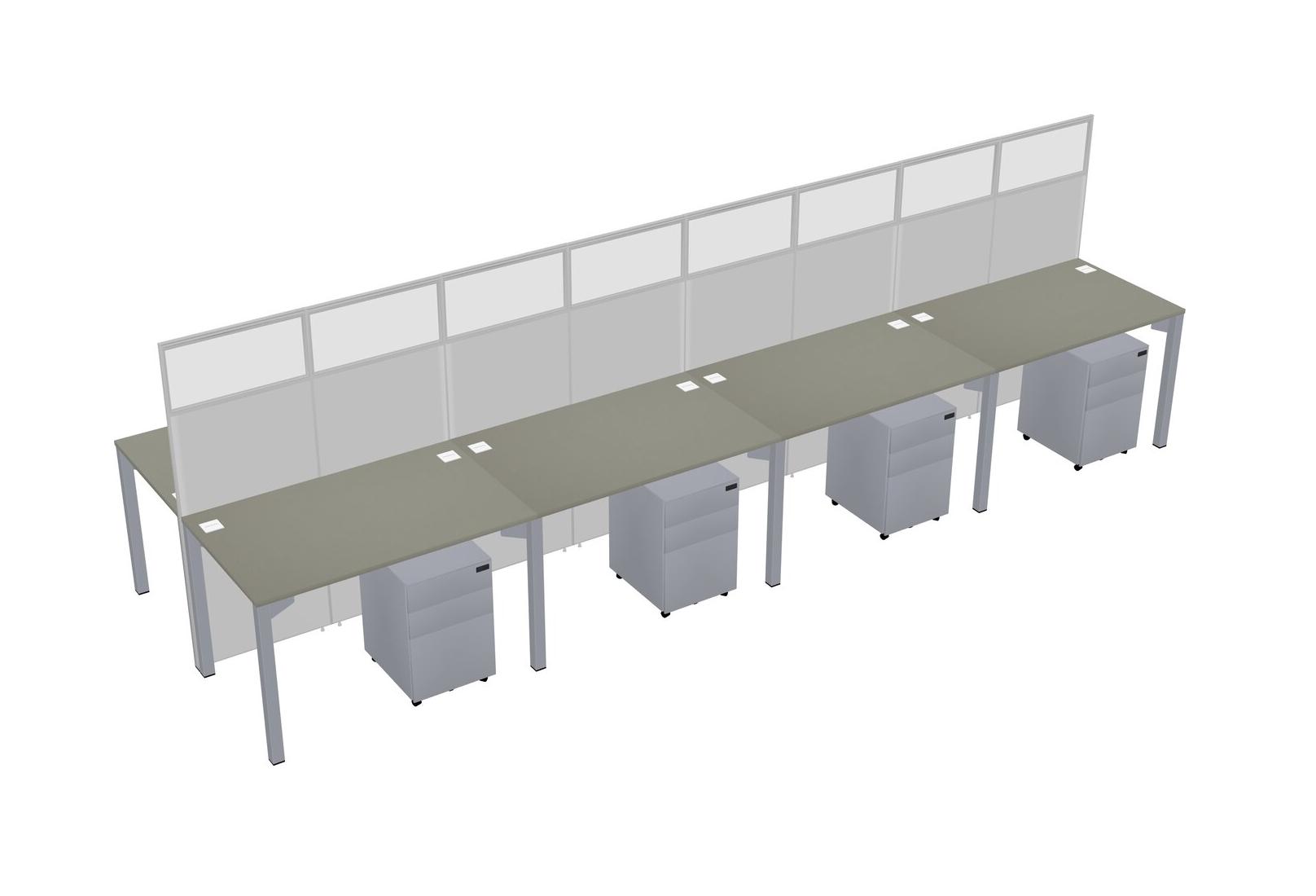 Grey Shadows Shared Rectangular Office Cubicle Panel System With Mobile Drawers For 8 Persons