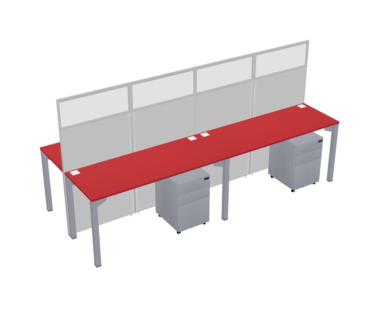 Prism Red Shared Rectangular Office Cubicle Panel System With Mobile Drawers For 4 Persons