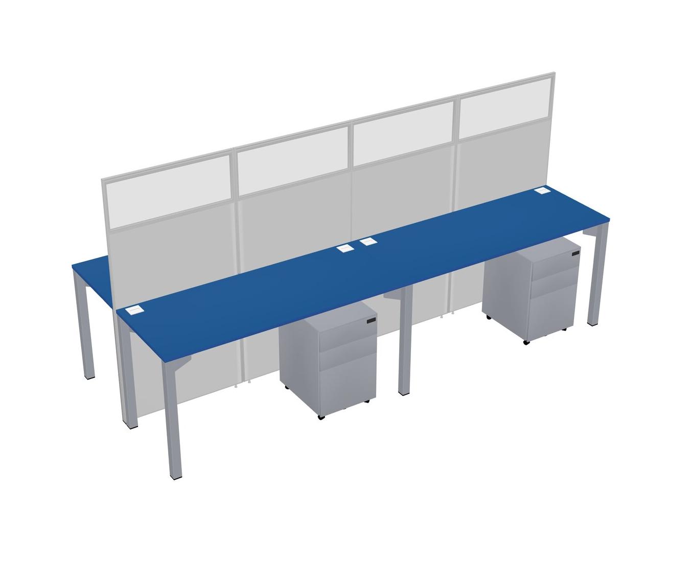 Prism Blue Shared Rectangular Office Cubicle Panel System With Mobile Drawers For 4 Persons