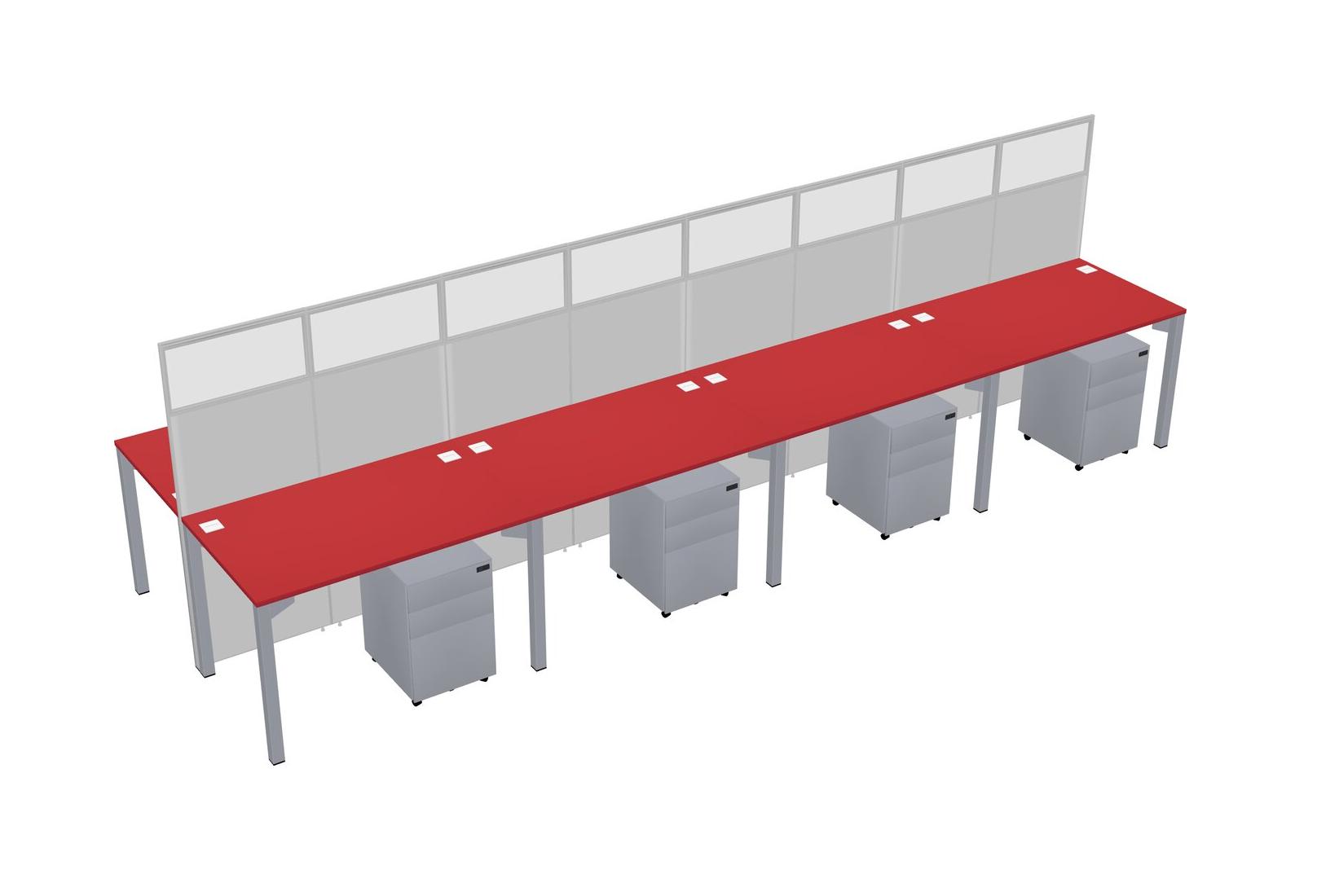 Prism Red Shared Rectangular Office Cubicle Panel System With Mobile Drawers For 8 Persons