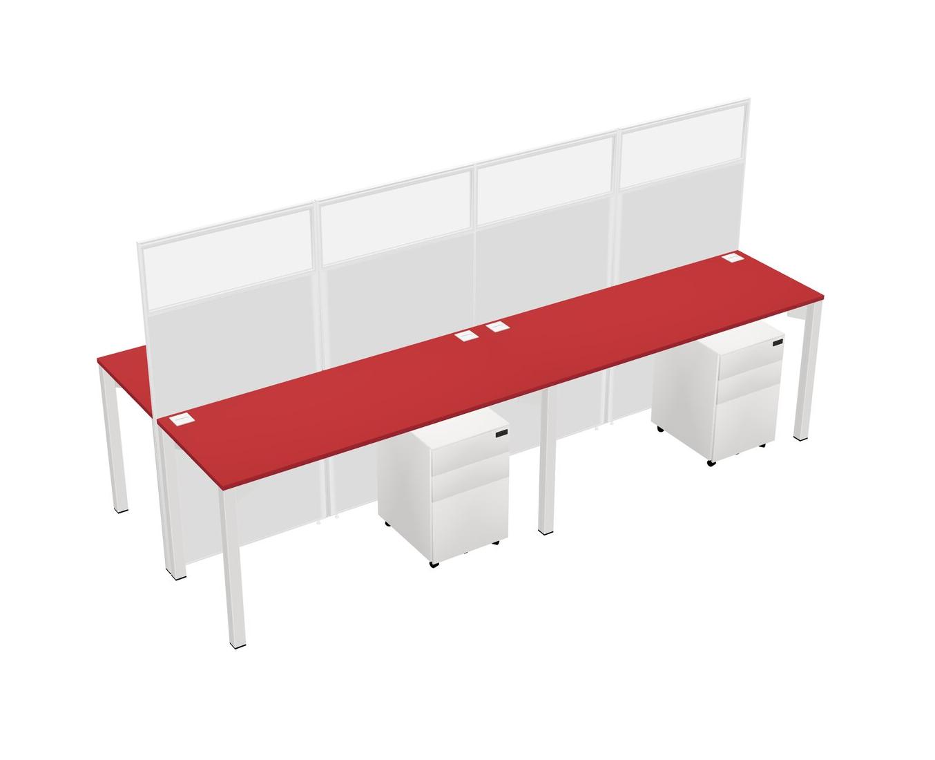 Prism Red Shared Rectangular Office Cubicle Panel System With Mobile Drawers For 4 Persons