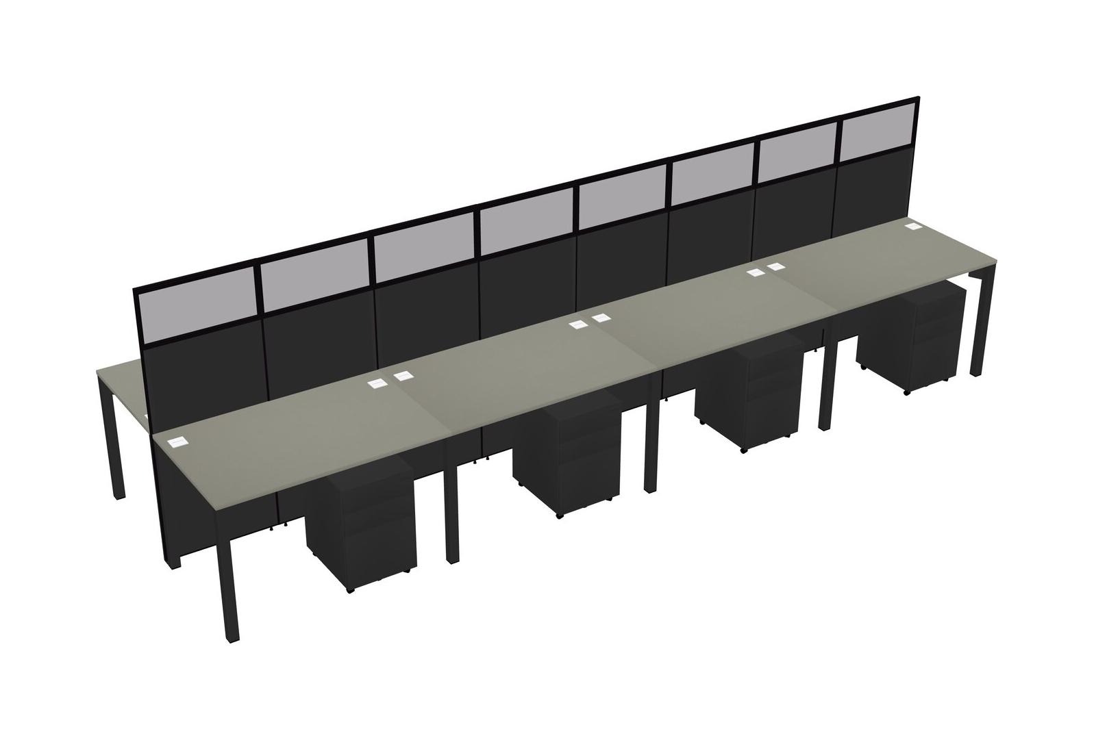 Grey Shadows Shared Rectangular Office Cubicle Panel System With Mobile Drawers For 8 Persons