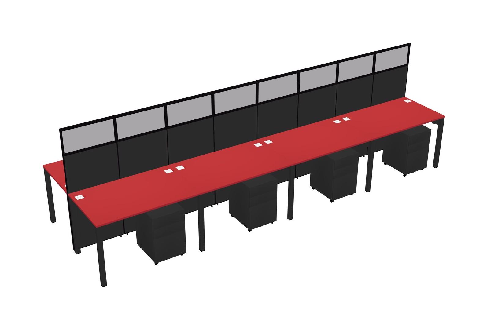 Prism Red Shared Rectangular Office Cubicle Panel System With Mobile Drawers For 8 Persons