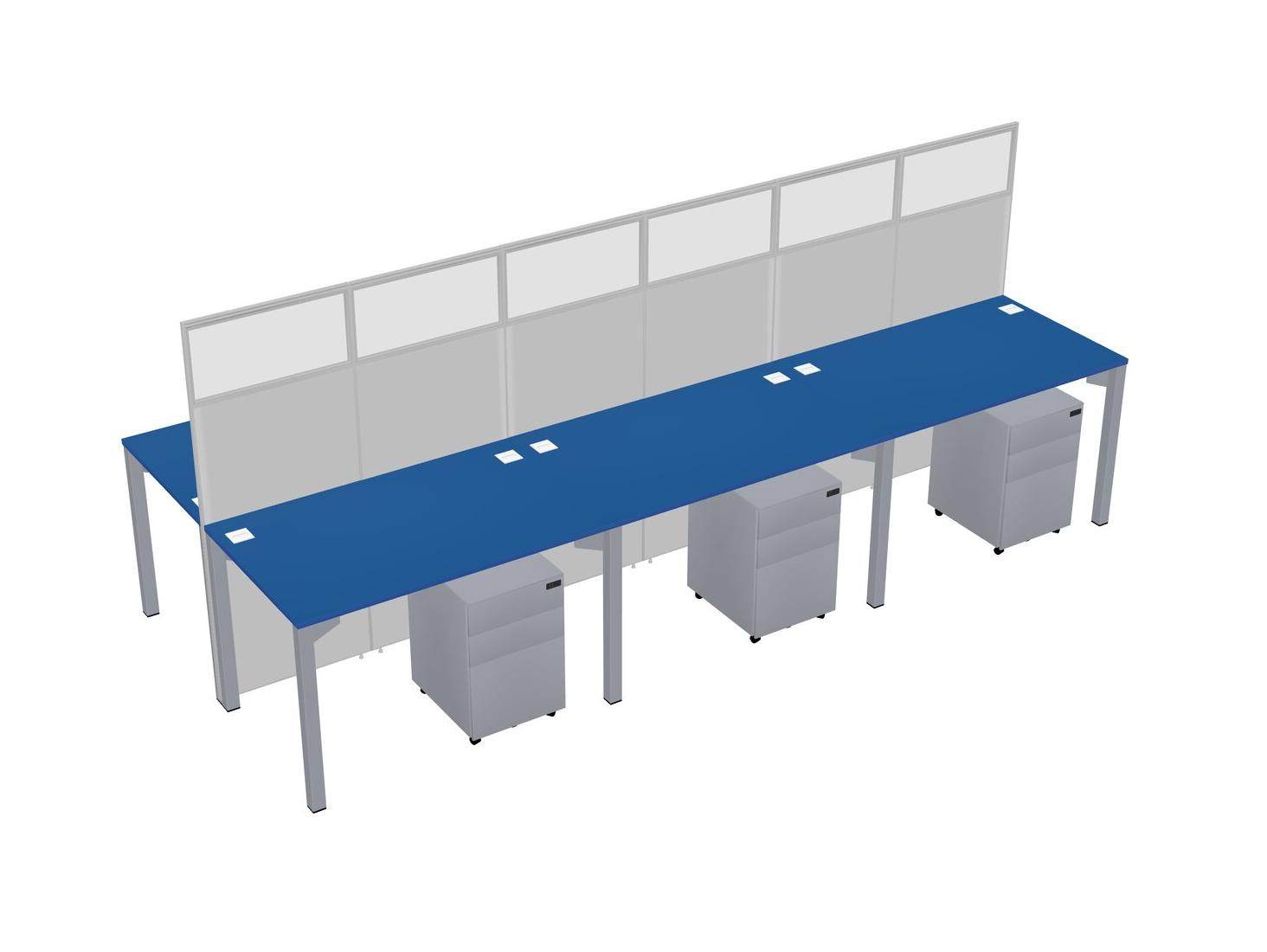 Prism Blue Shared Rectangular Office Cubicle Panel System With Mobile Drawers For 6 Persons