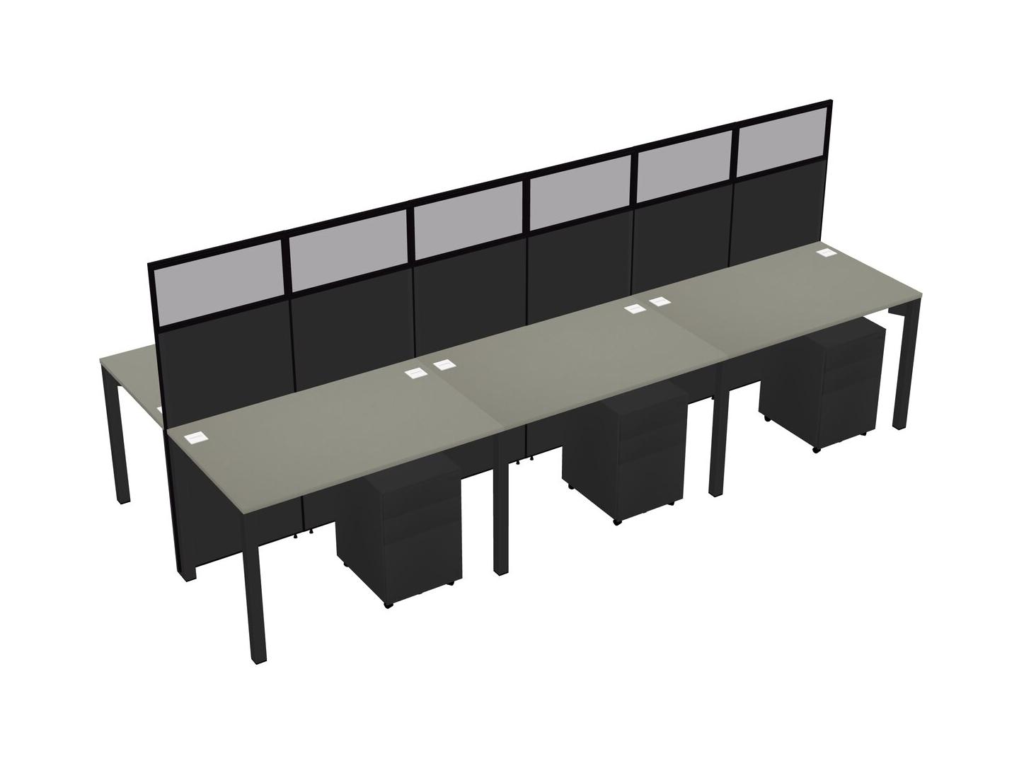 Grey Shadows Shared Rectangular Office Cubicle Panel System With Mobile Drawers For 6 Persons