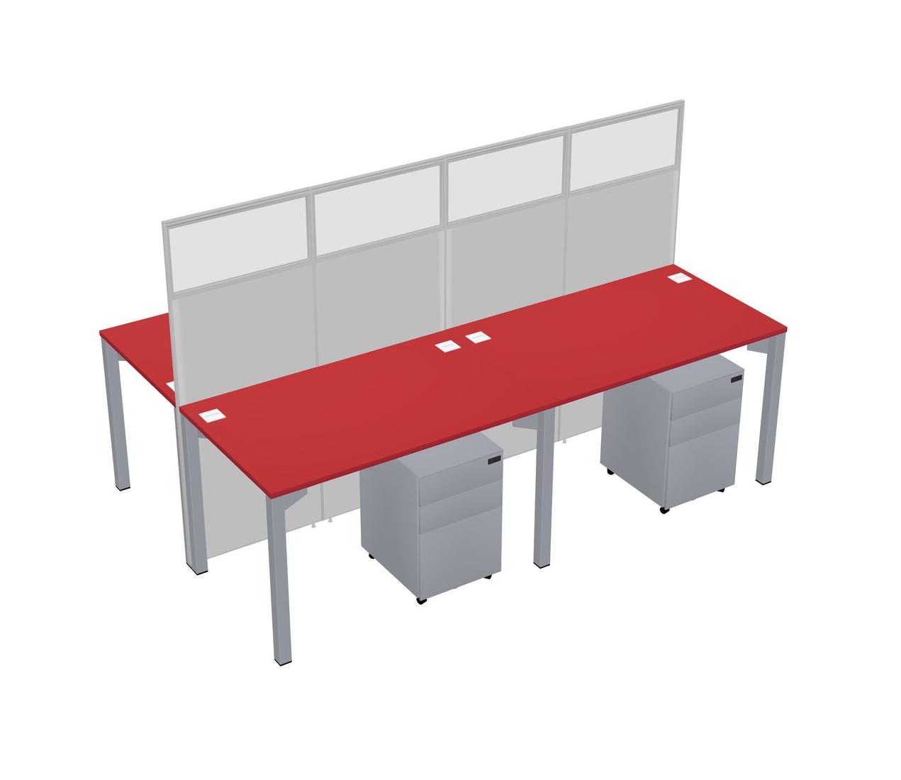 Prism Red Shared Rectangular Office Cubicle Panel System With Mobile Drawers For 4 Persons
