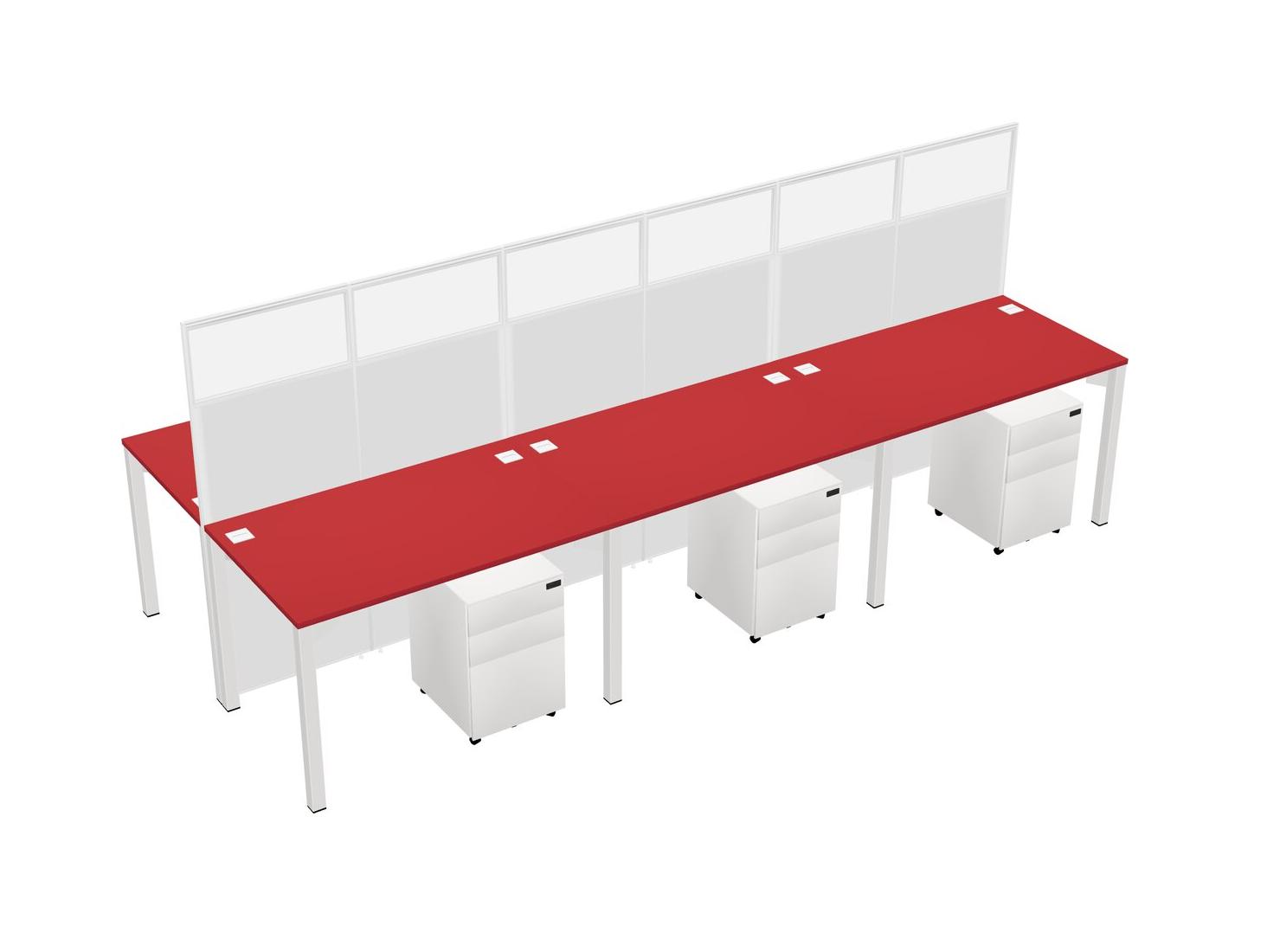 Prism Red Shared Rectangular Office Cubicle Panel System With Mobile Drawers For 6 Persons