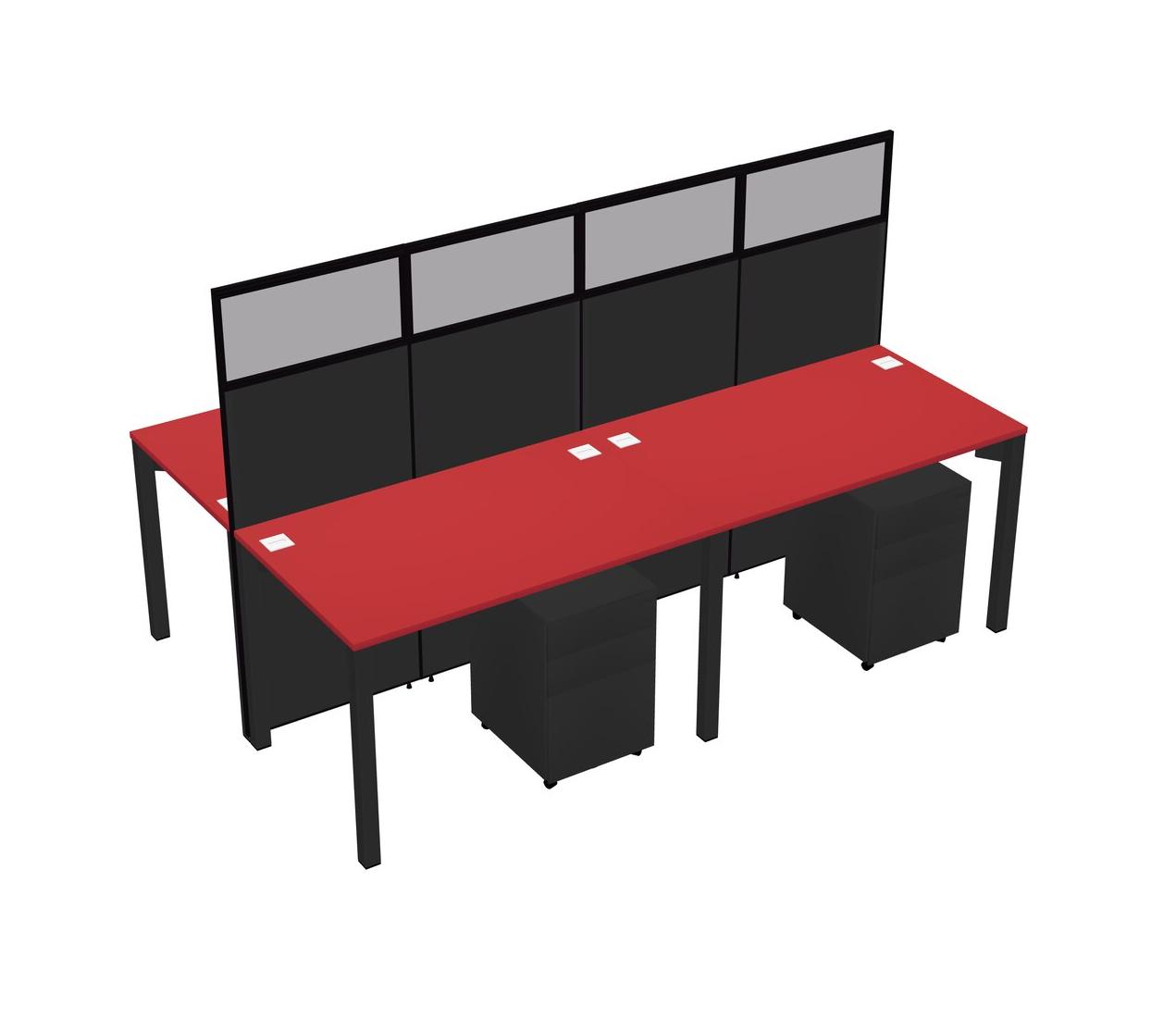 Prism Red Shared Rectangular Office Cubicle Panel System With Mobile Drawers For 4 Persons