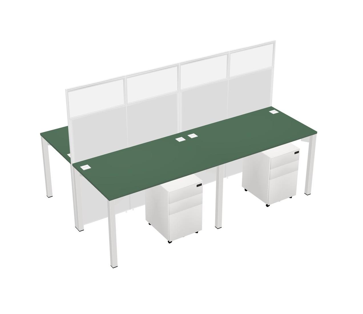 Green Shared Rectangular Office Cubicle Panel System With Mobile Drawers For 4 Persons