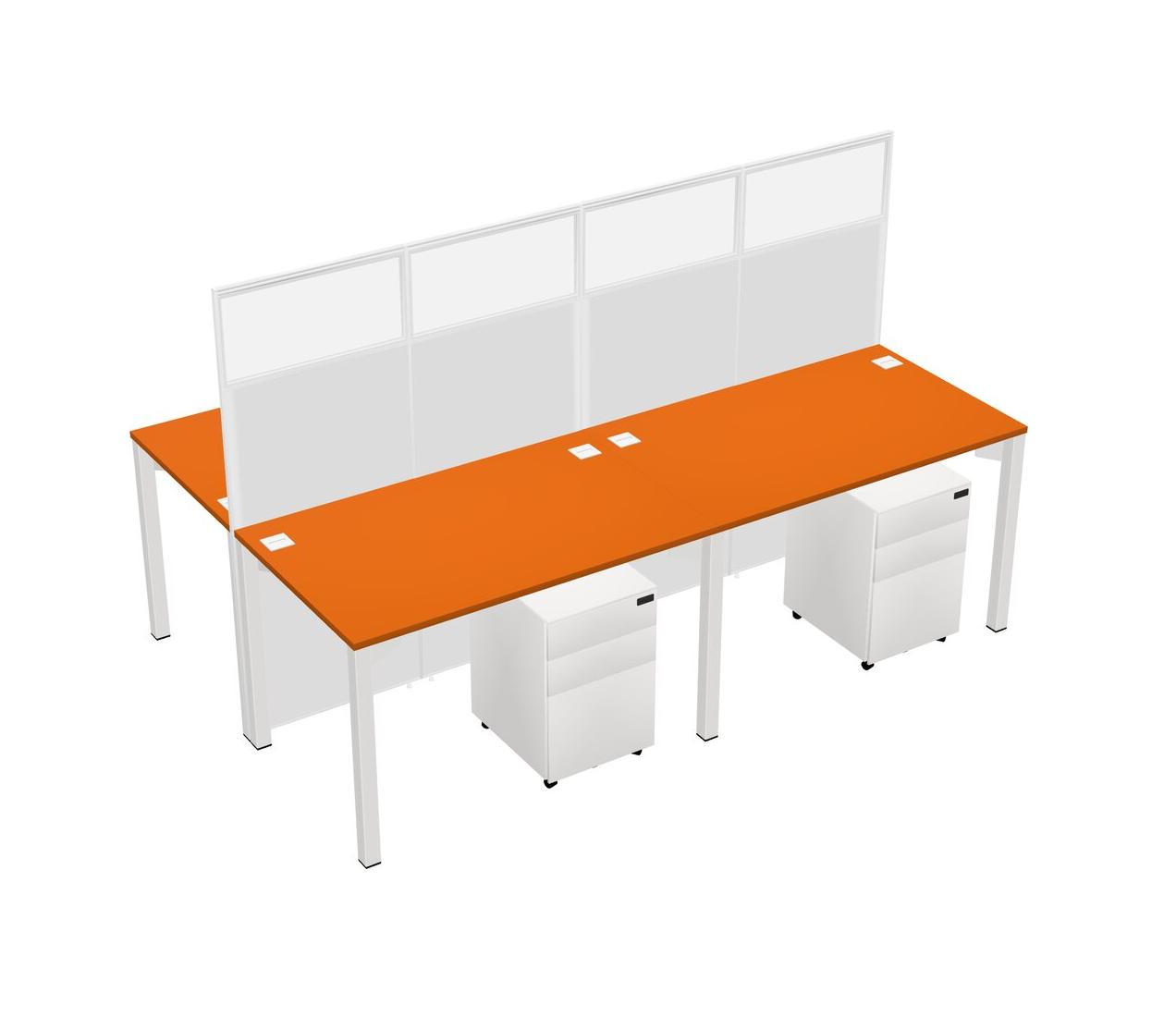 Orange Shared Rectangular Office Cubicle Panel System With Mobile Drawers For 4 Persons