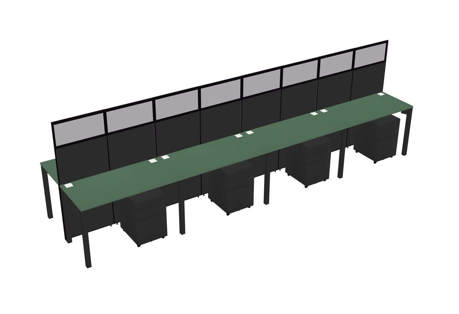 Green Shared Rectangular Office Cubicle Panel System With Mobile Drawers For 8 Persons