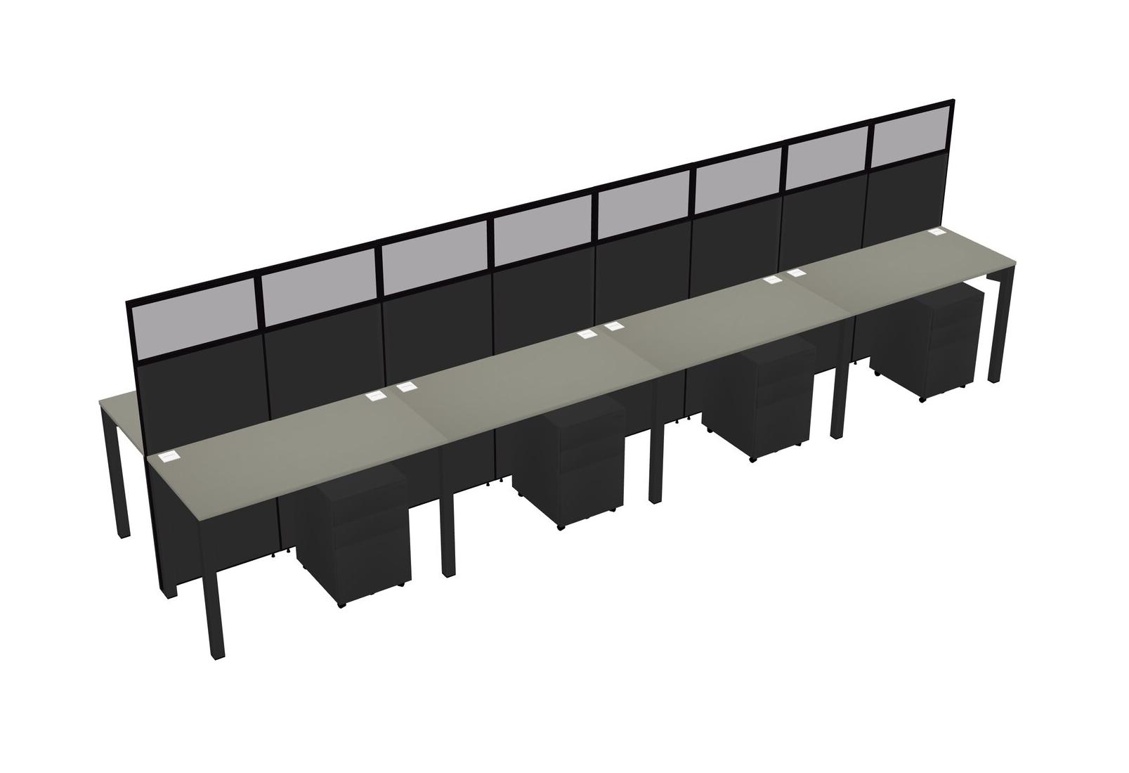 Grey Shadows Shared Rectangular Office Cubicle Panel System With Mobile Drawers For 8 Persons