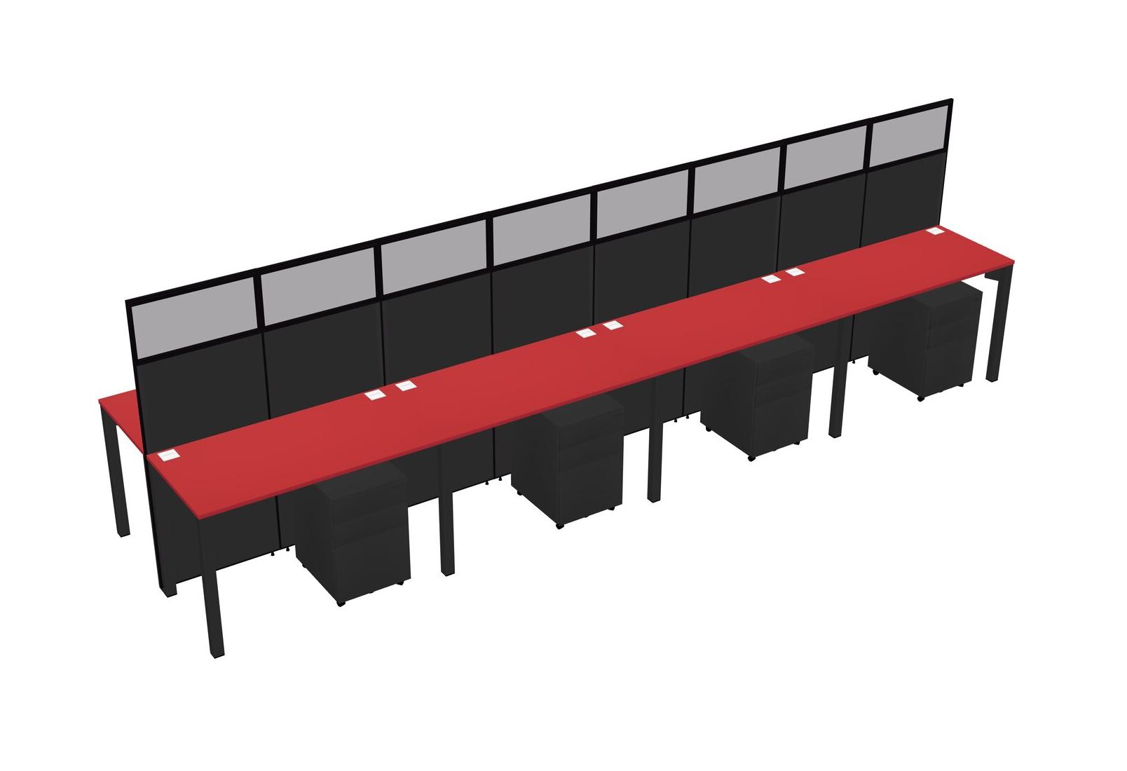 Prism Red Shared Rectangular Office Cubicle Panel System With Mobile Drawers For 8 Persons
