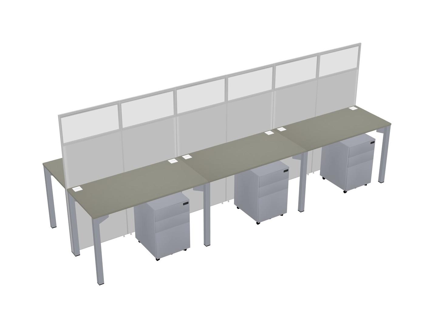 Grey Shadows Shared Rectangular Office Cubicle Panel System With Mobile Drawers For 6 Persons