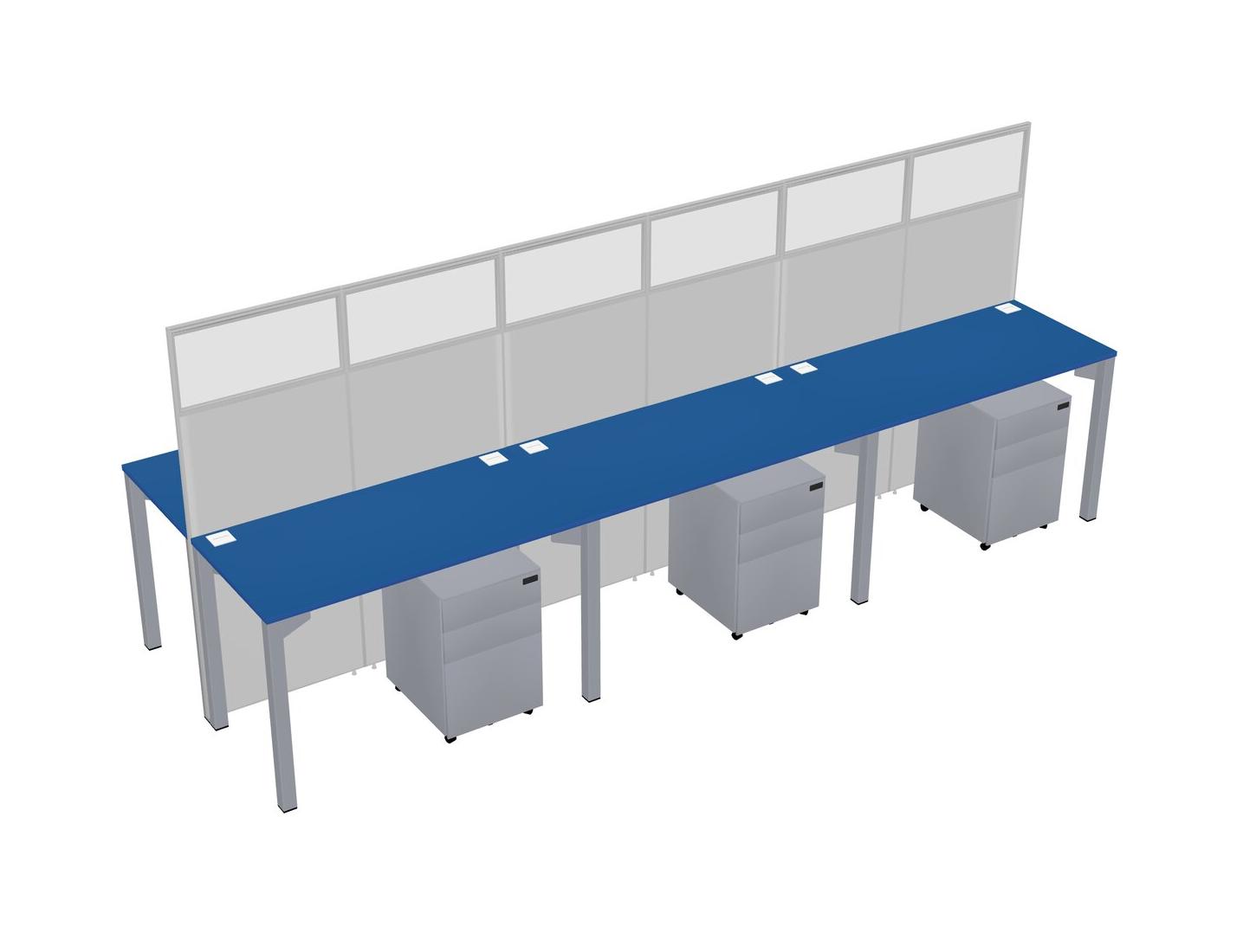 Prism Blue Shared Rectangular Office Cubicle Panel System With Mobile Drawers For 6 Persons