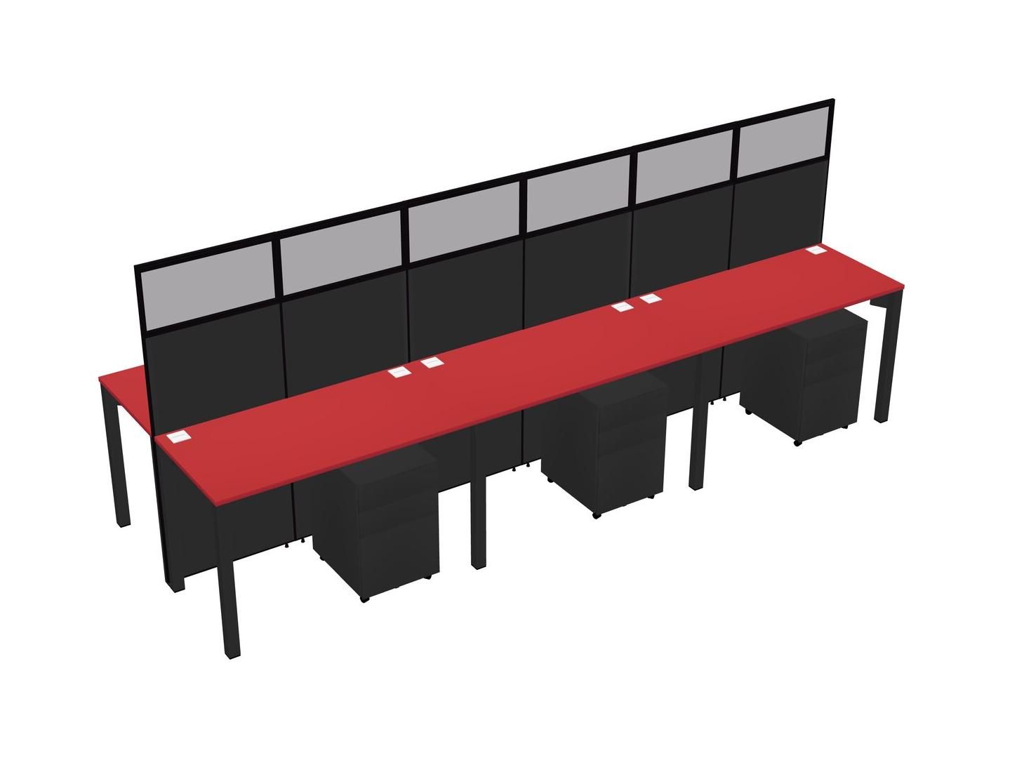Prism Red Shared Rectangular Office Cubicle Panel System With Mobile Drawers For 6 Persons