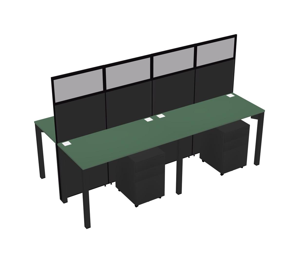 Green Shared Rectangular Office Cubicle Panel System With Mobile Drawers For 4 Persons