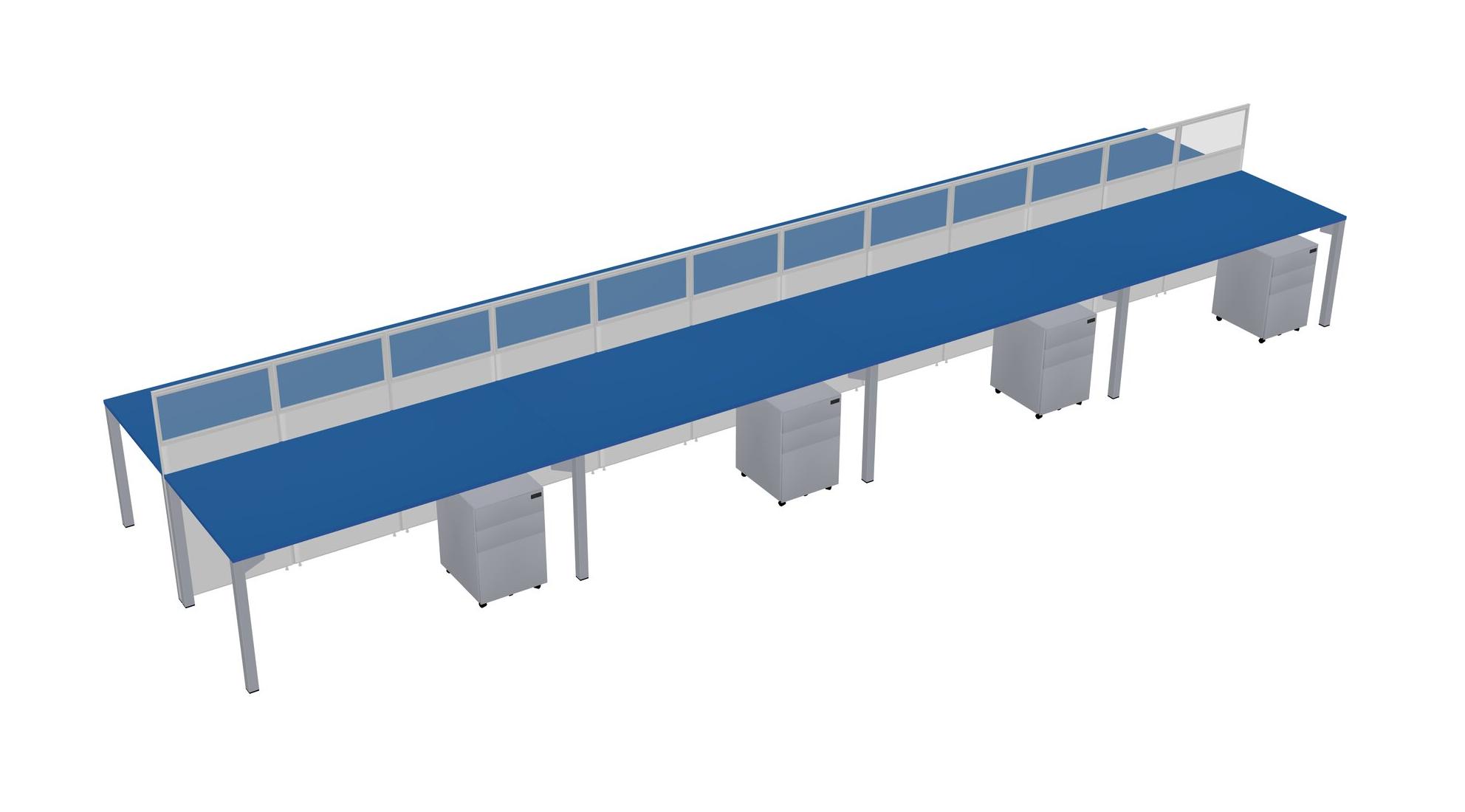 Prism Blue Shared Rectangular Office Cubicle Panel System With Mobile Drawers For 8 Persons