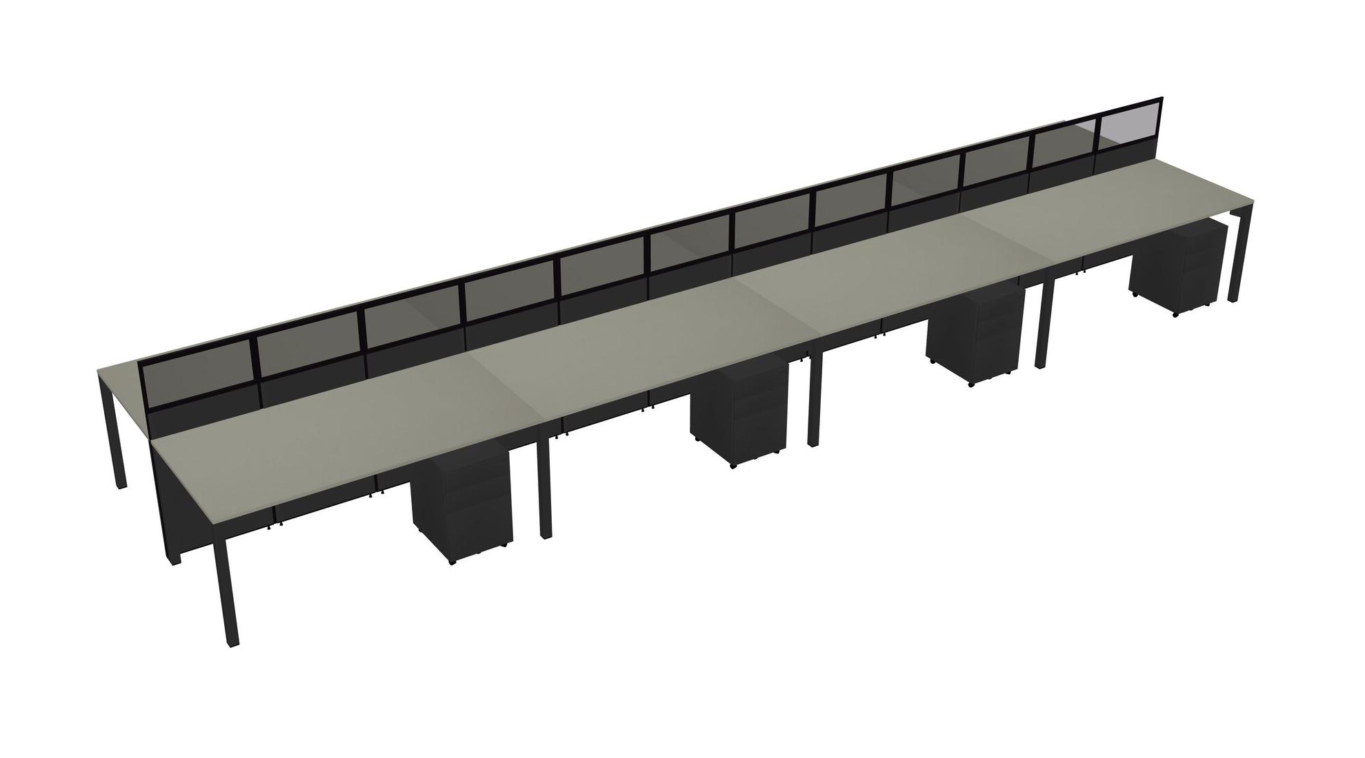Grey Shadows Shared Rectangular Office Cubicle Panel System With Mobile Drawers For 8 Persons