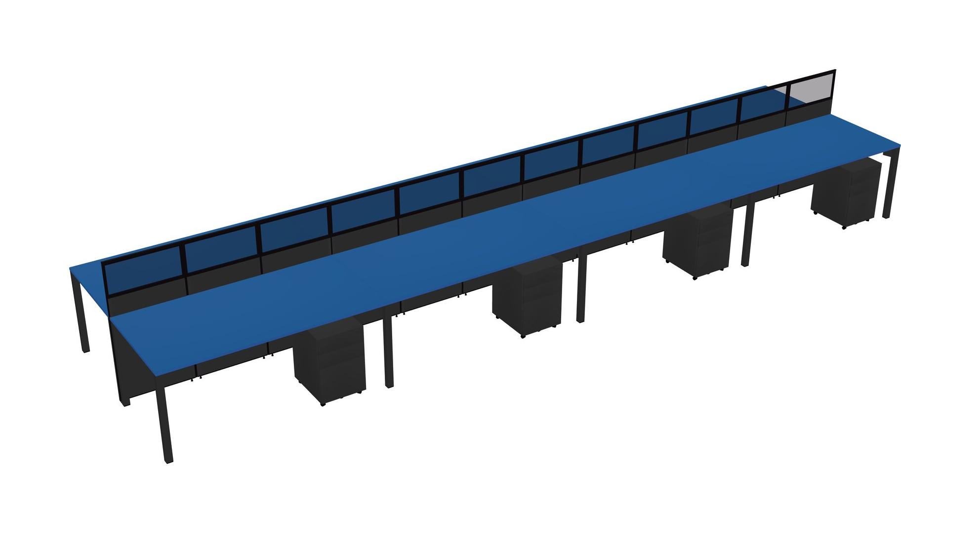 Prism Blue Shared Rectangular Office Cubicle Panel System With Mobile Drawers For 8 Persons
