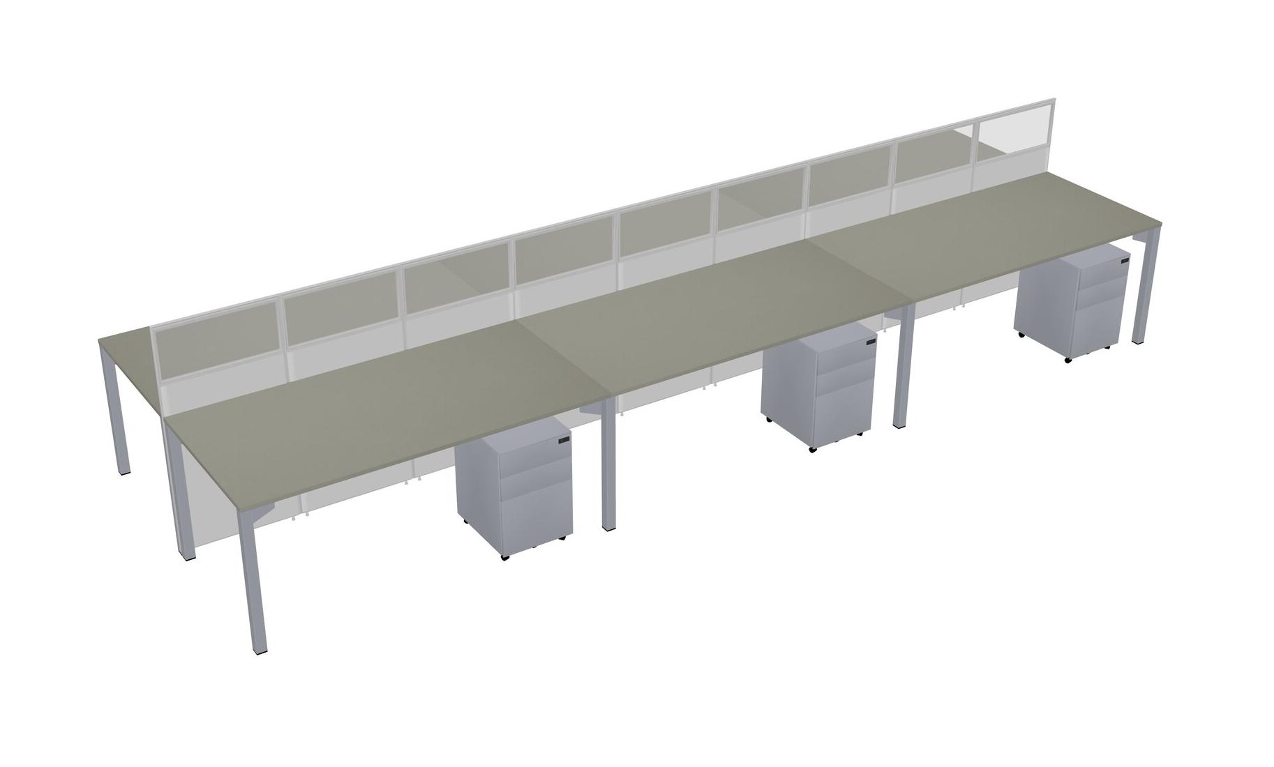 Grey Shadows Shared Rectangular Office Cubicle Panel System With Mobile Drawers For 6 Persons