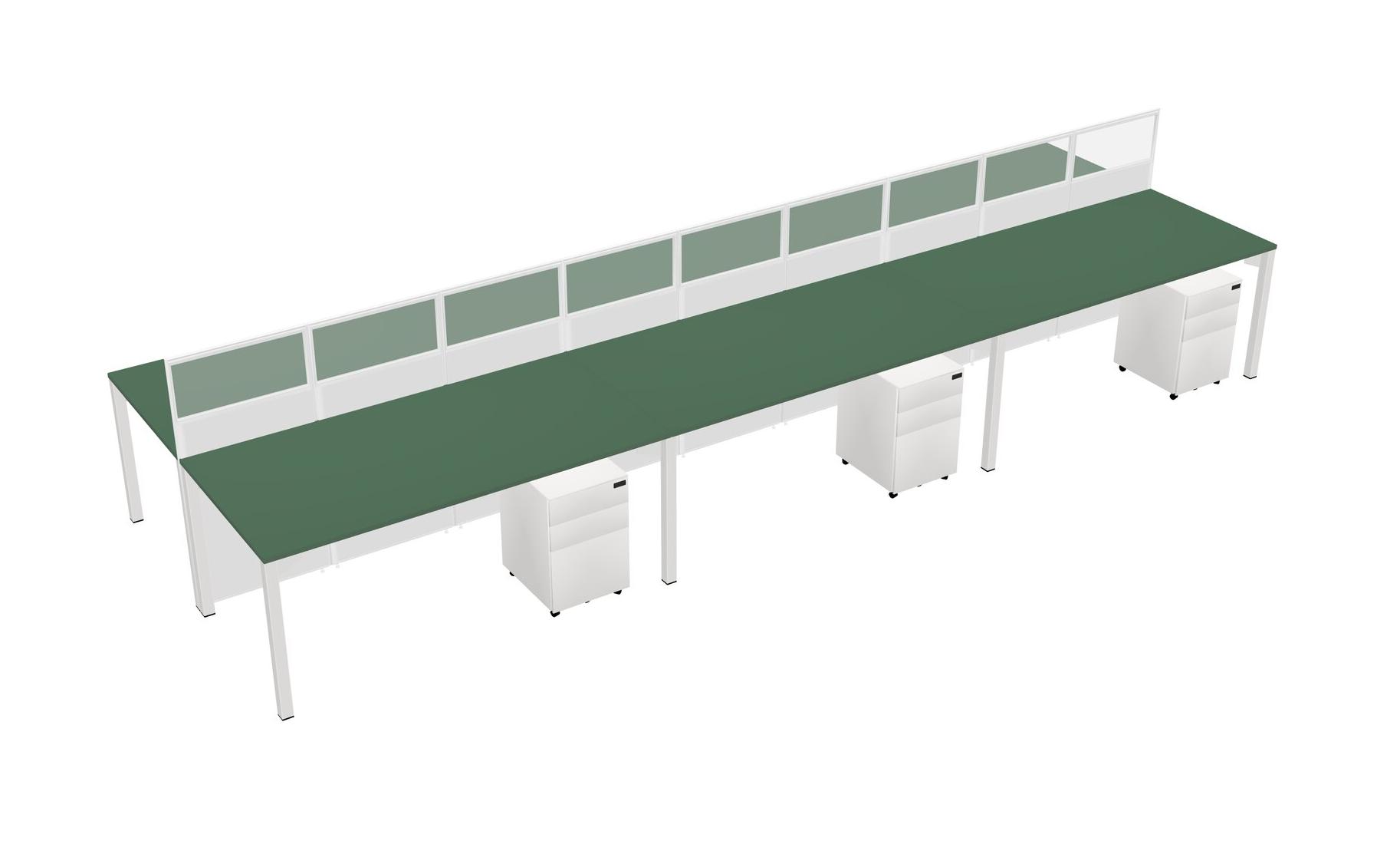 Green Shared Rectangular Office Cubicle Panel System With Mobile Drawers For 6 Persons