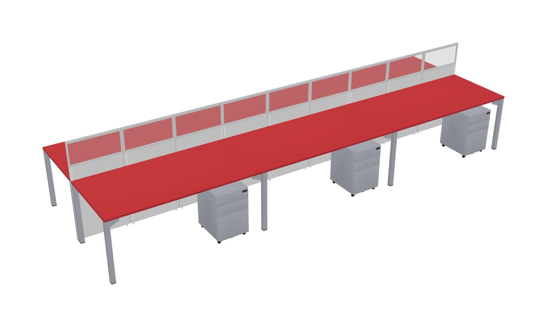 Prism Red Shared Rectangular Office Cubicle Panel System With Mobile Drawers For 6 Persons