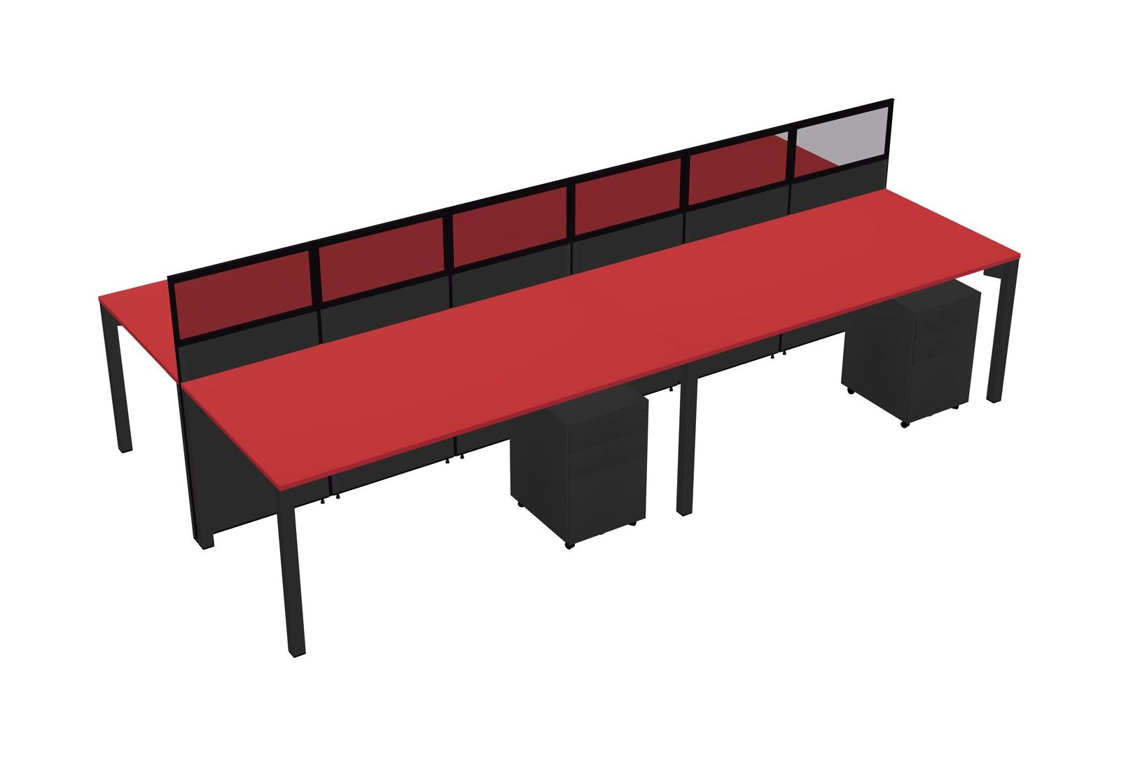 Prism Red Shared Rectangular Office Cubicle Panel System With Mobile Drawers For 4 Persons