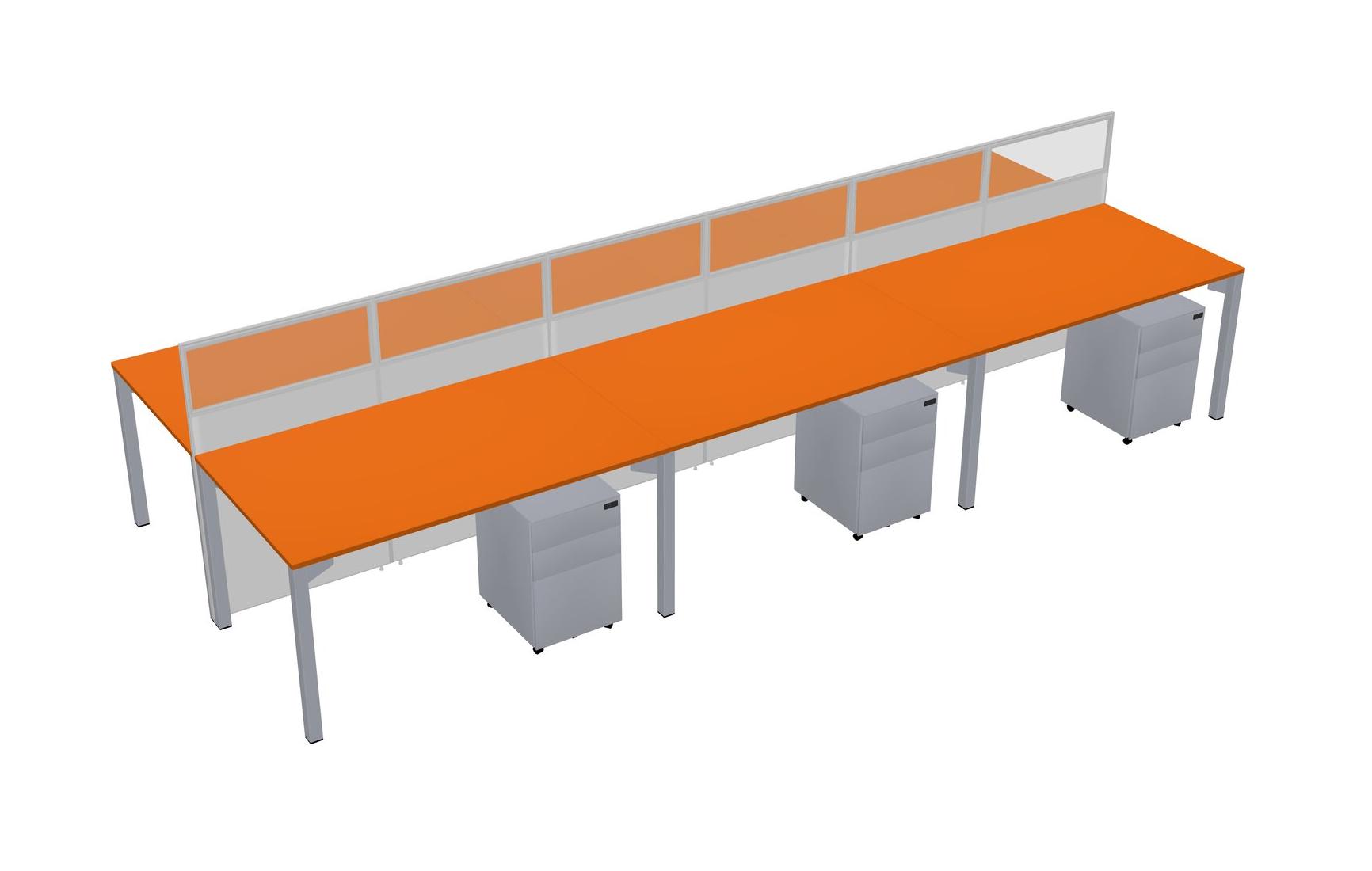 Orange Shared Rectangular Office Cubicle Panel System With Mobile Drawers For 6 Persons