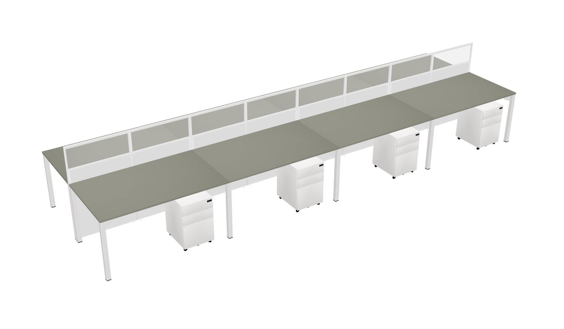 Grey Shadows Shared Rectangular Office Cubicle Panel System With Mobile Drawers For 8 Persons