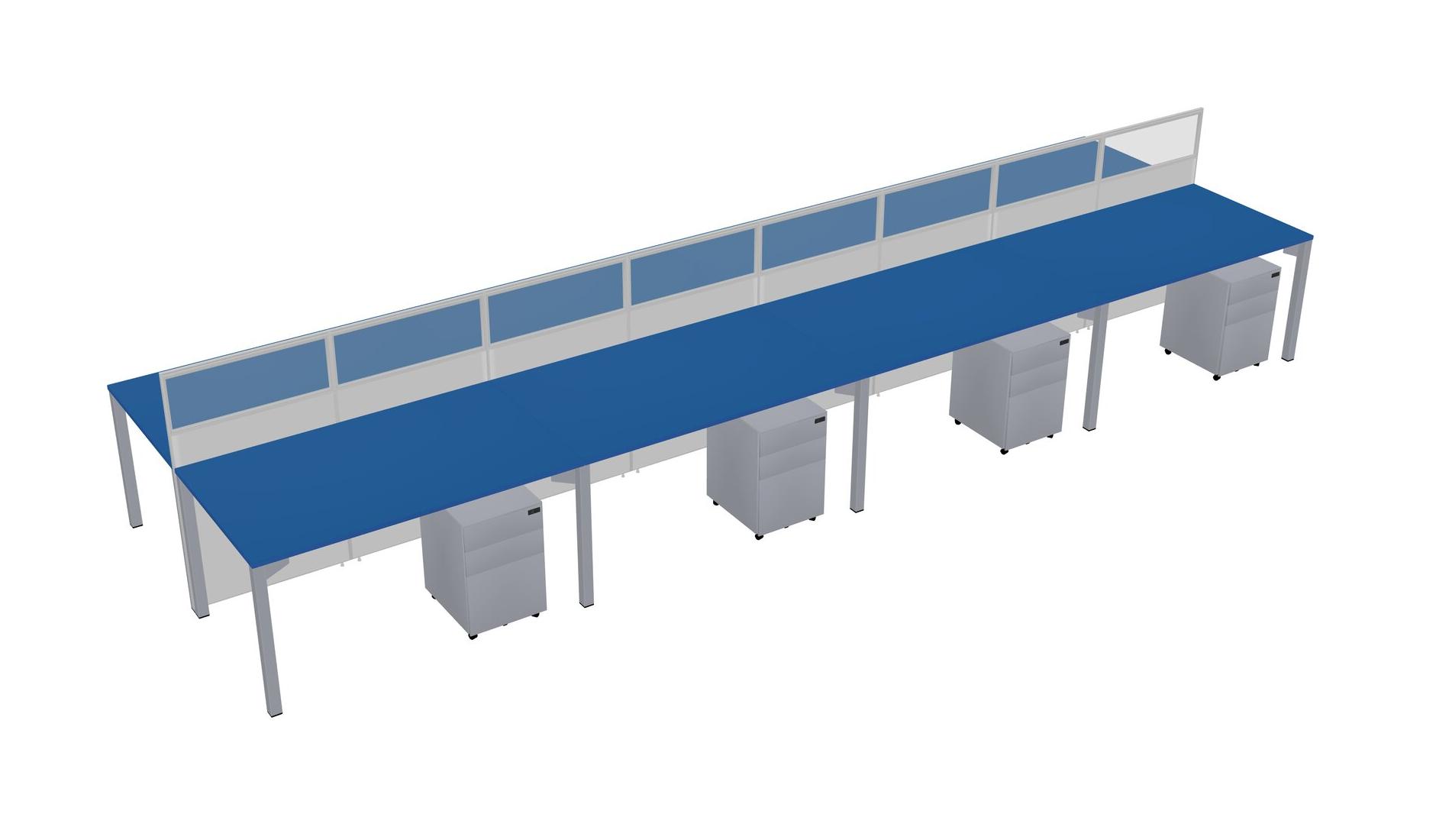 Prism Blue Shared Rectangular Office Cubicle Panel System With Mobile Drawers For 8 Persons