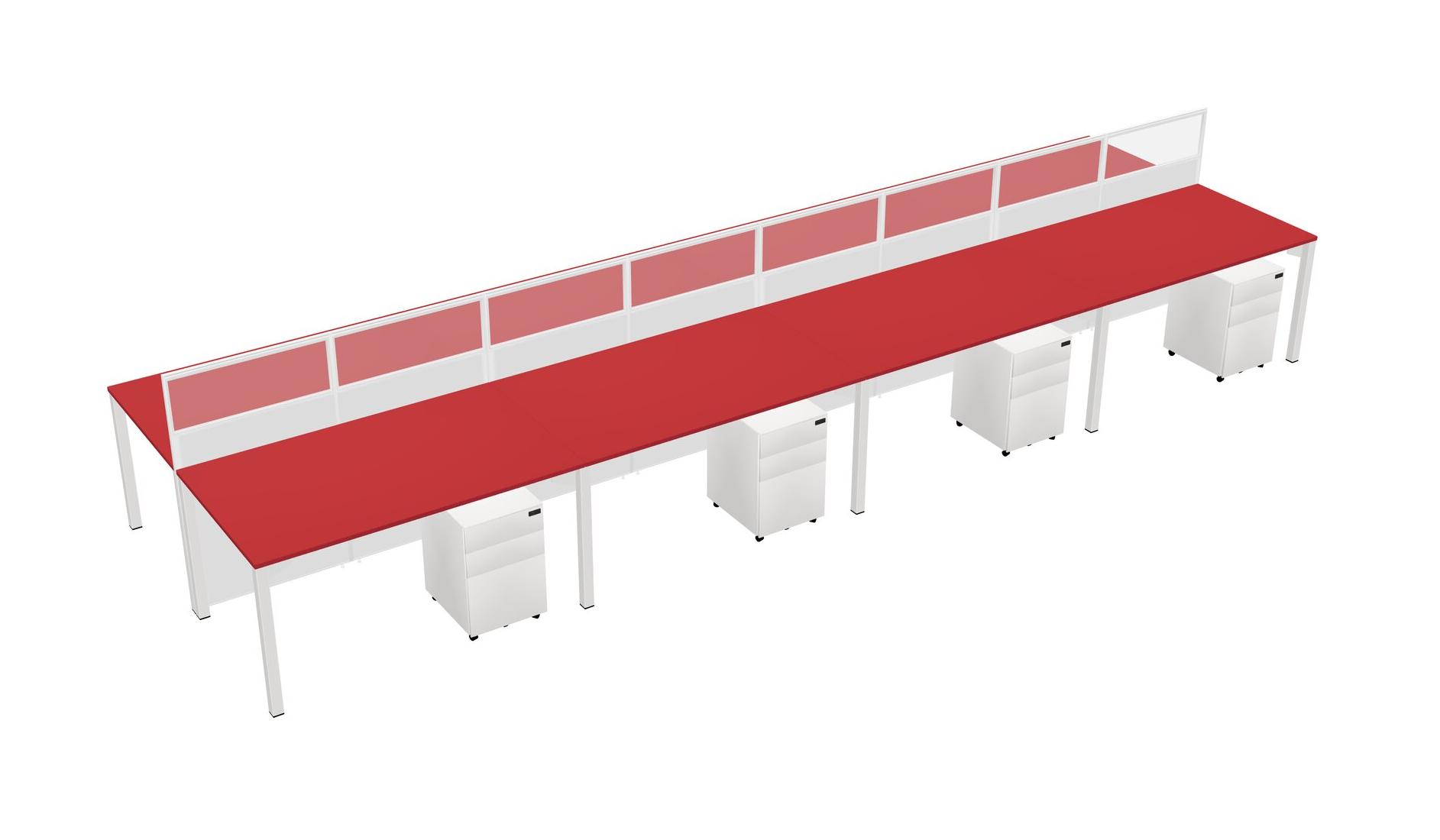 Prism Red Shared Rectangular Office Cubicle Panel System With Mobile Drawers For 8 Persons