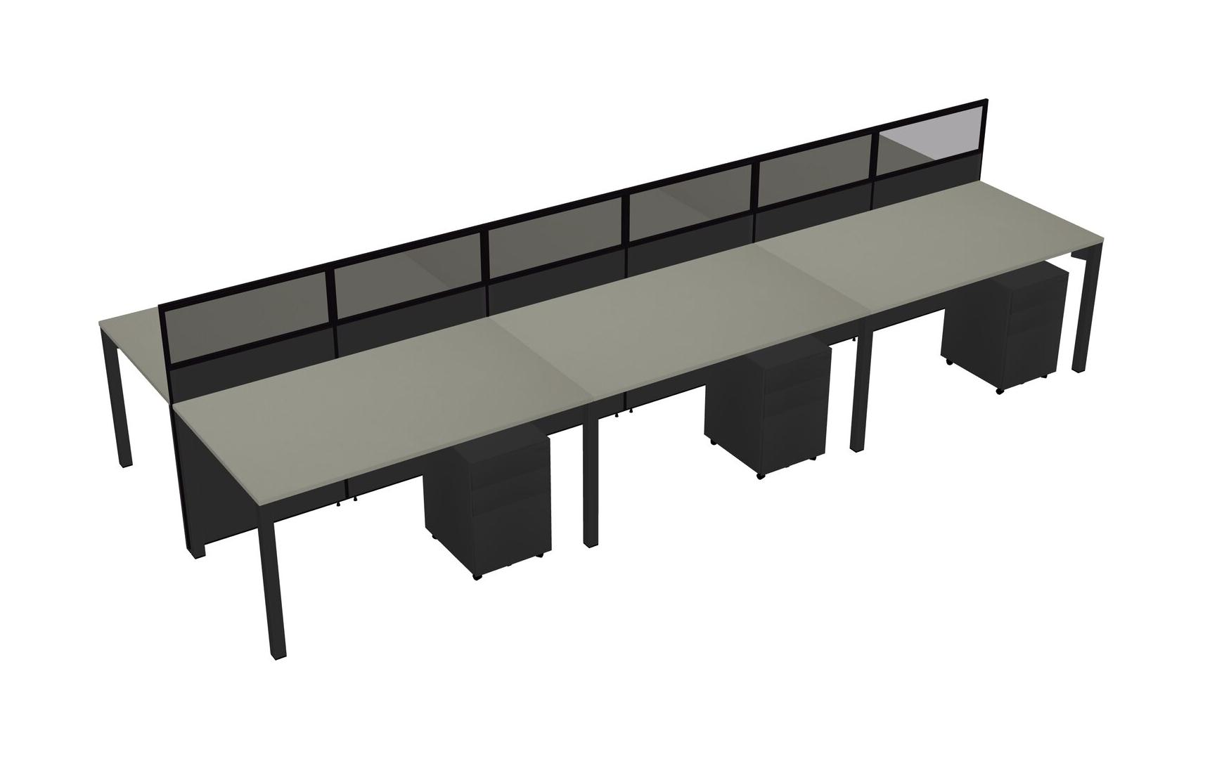 Grey Shadows Shared Rectangular Office Cubicle Panel System With Mobile Drawers For 6 Persons