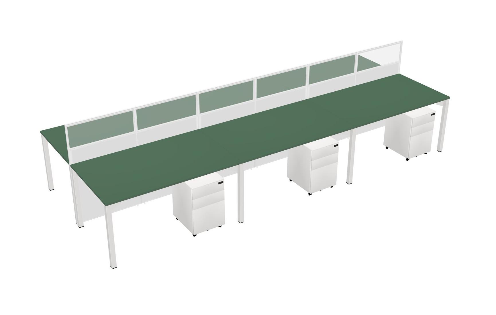 Green Shared Rectangular Office Cubicle Panel System With Mobile Drawers For 6 Persons