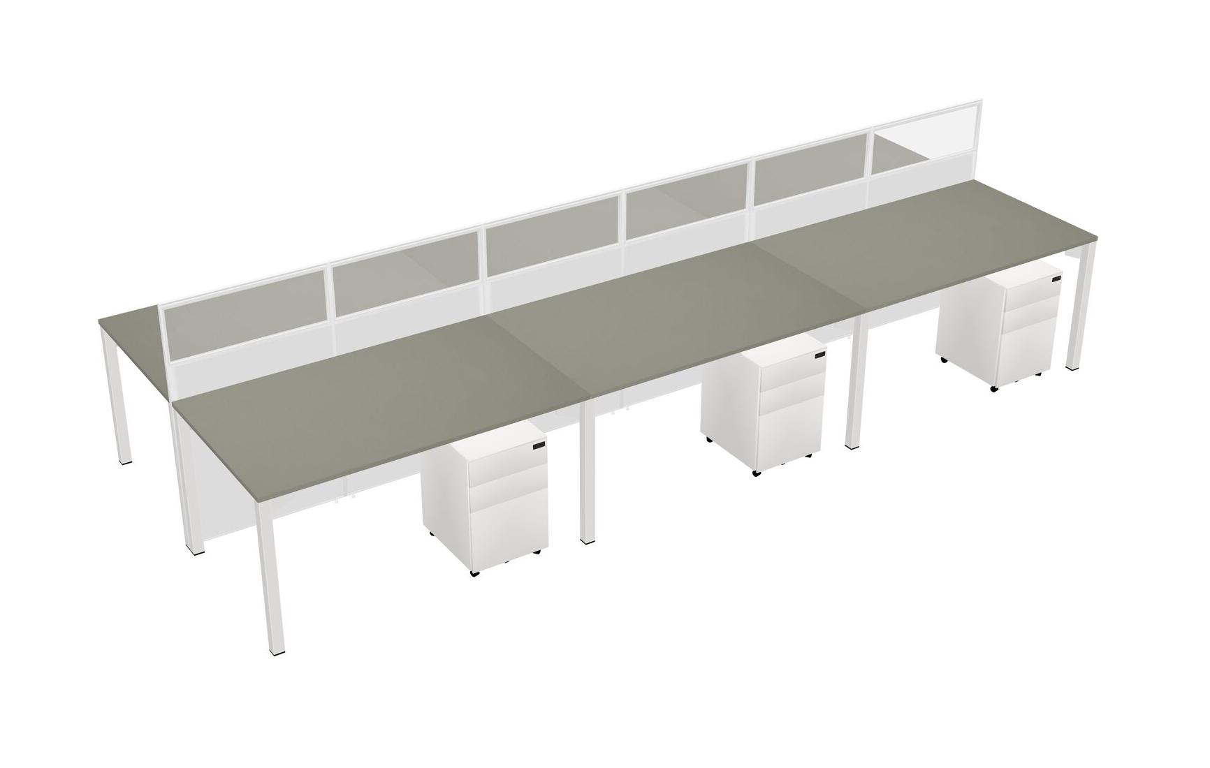 Grey Shadows Shared Rectangular Office Cubicle Panel System With Mobile Drawers For 6 Persons