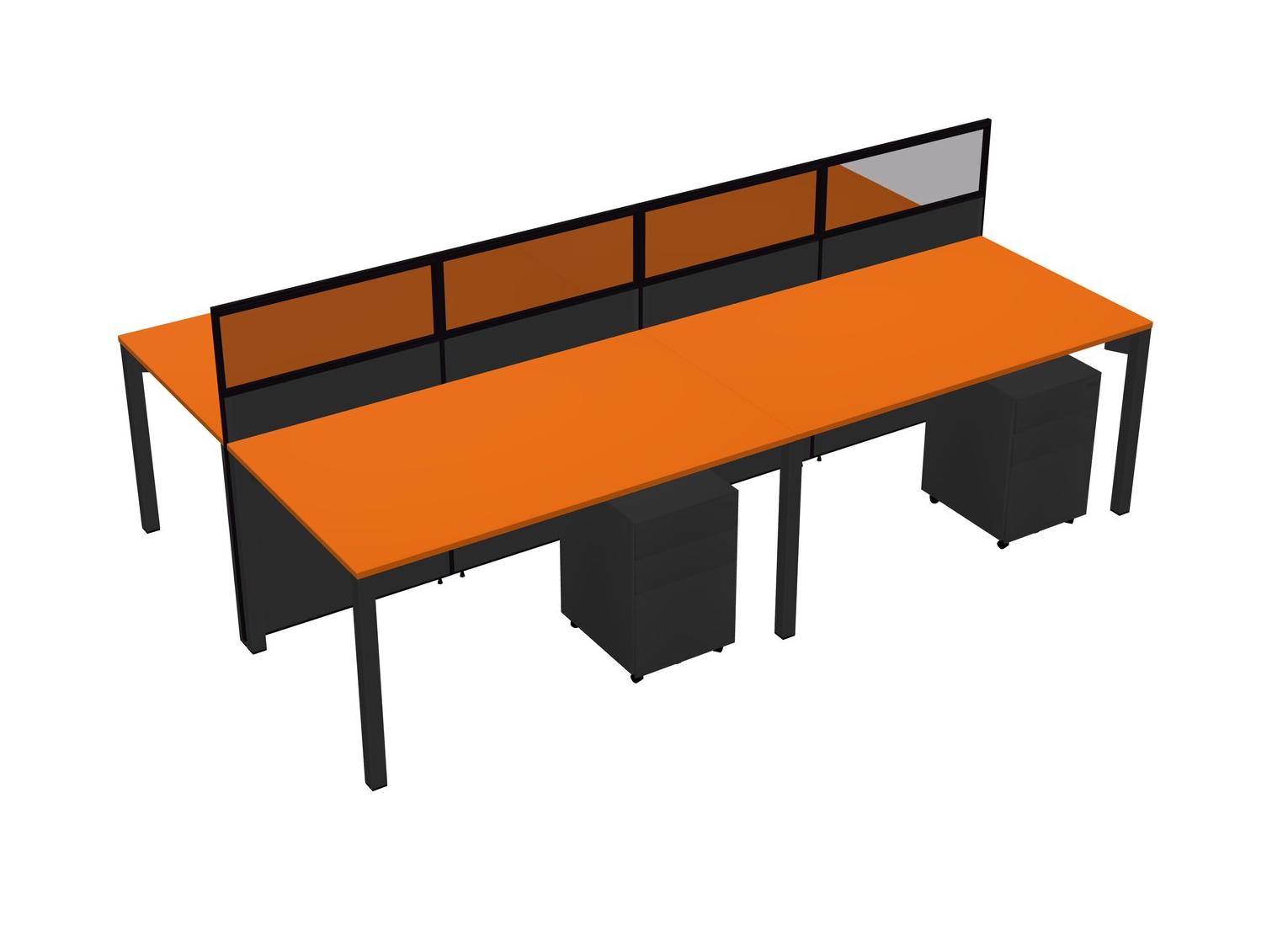 Orange Shared Rectangular Office Cubicle Panel System With Mobile Drawers For 4 Persons