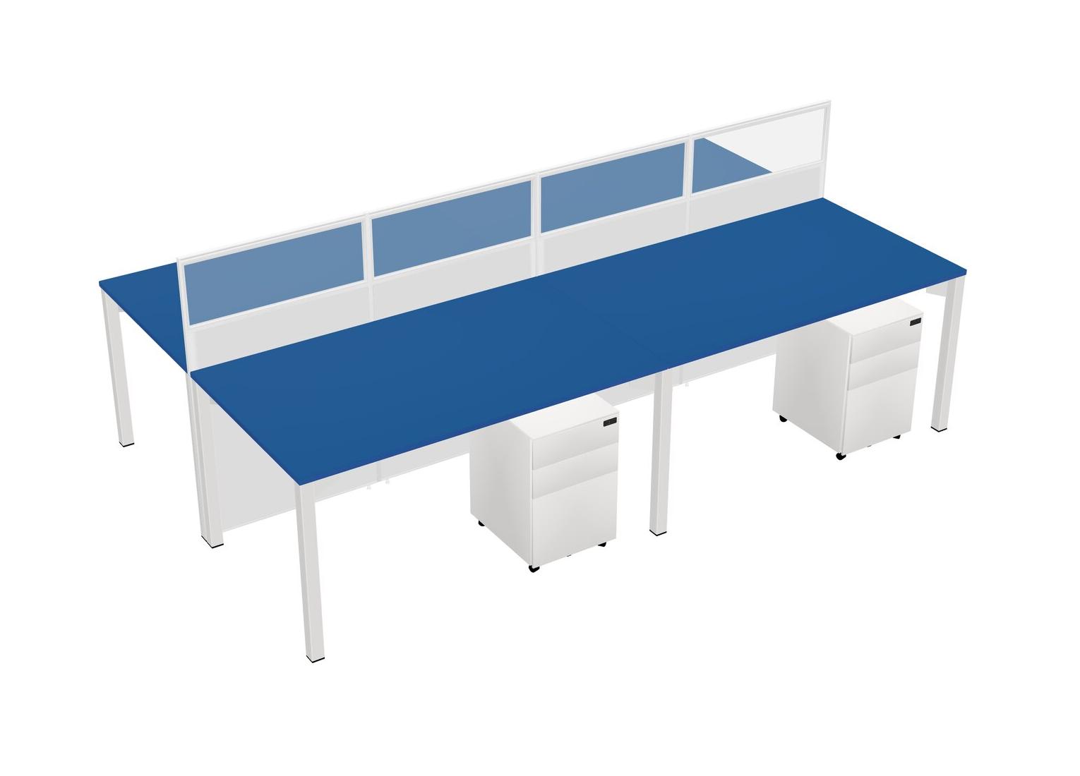 Prism Blue Shared Rectangular Office Cubicle Panel System With Mobile Drawers For 4 Persons