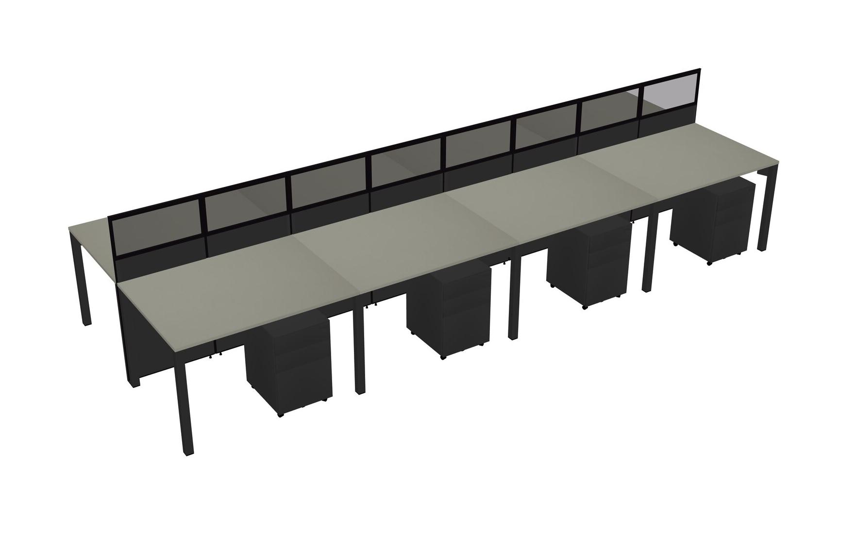 Grey Shadows Shared Rectangular Office Cubicle Panel System With Mobile Drawers For 8 Persons